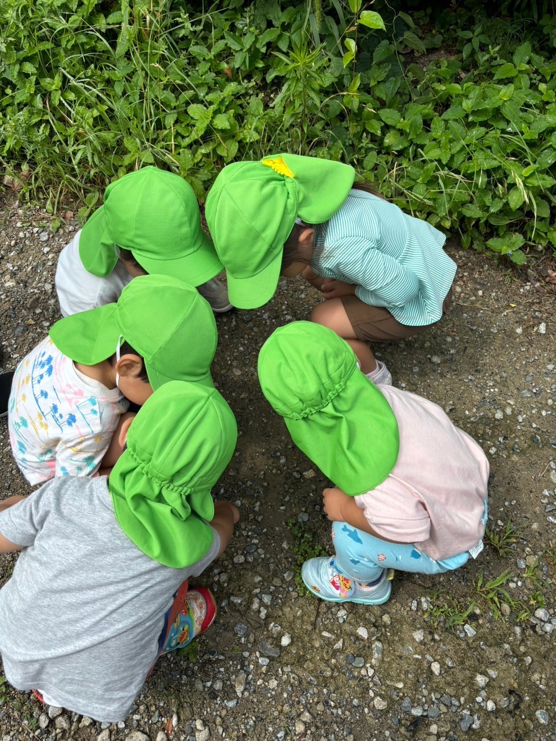 散歩の道中ダンゴムシを発見👀今までダンゴムシを触るのを怖がっていたお友だちが、「触る🤗」とダンゴムシをキャッチ🫴💕みんなから「すごーい😚」といわれ嬉しそうでした♪