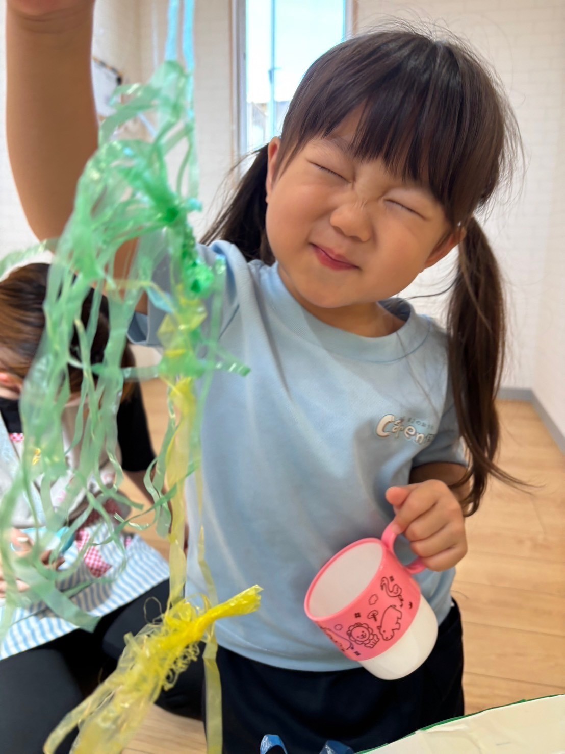 風船に飛ばされながらも楽しんでポンポンしてました💕【福津園の今日の給食です】