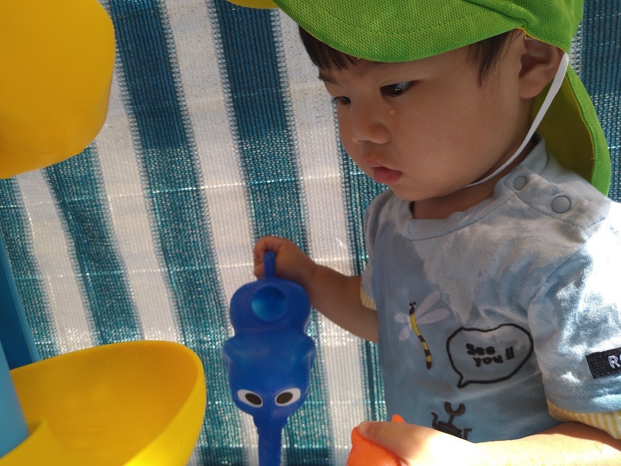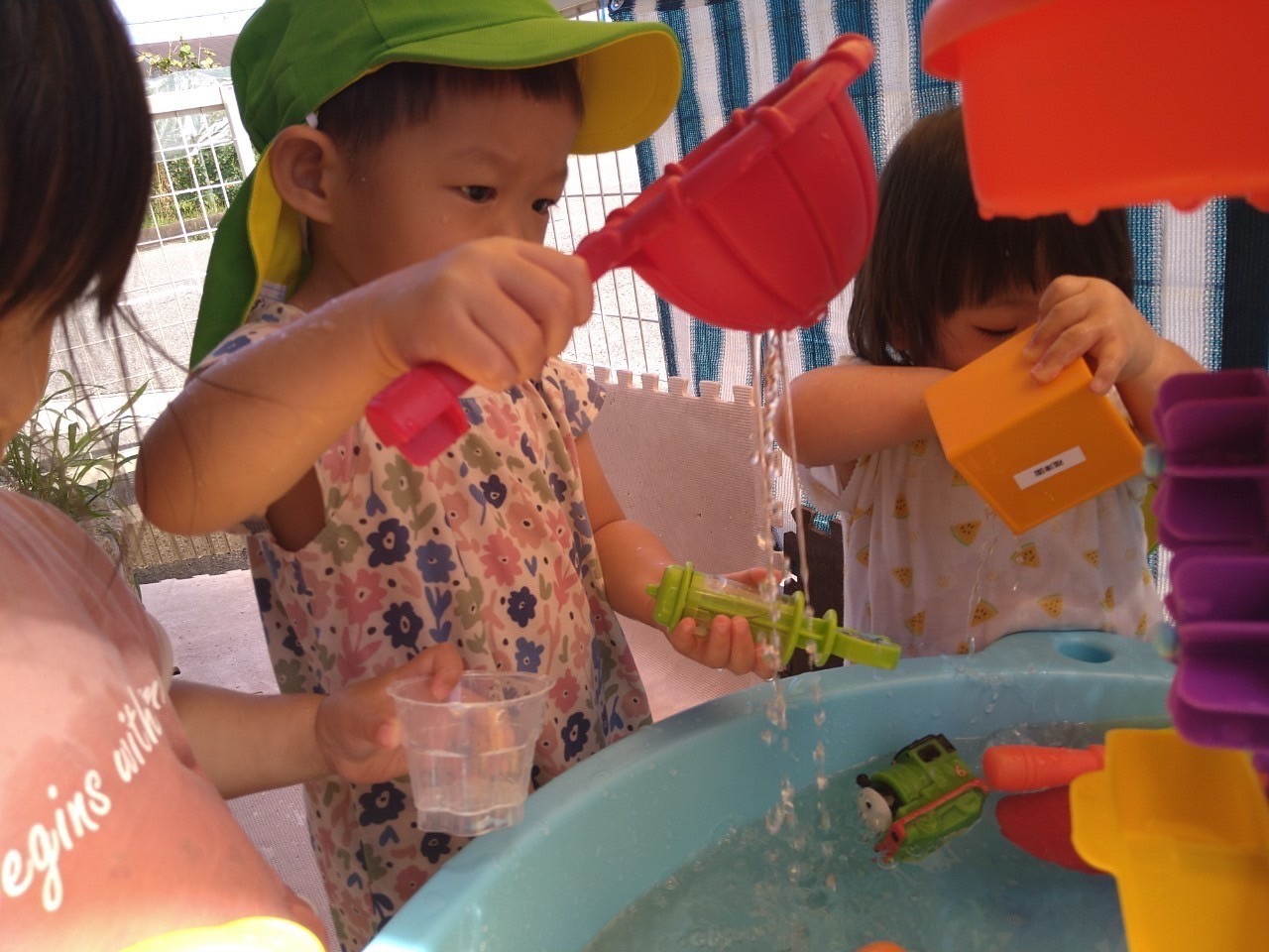 水あそびでは、ジョウロやカップを使い水の流れを観察(観察)