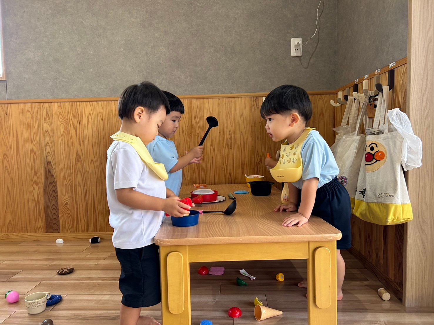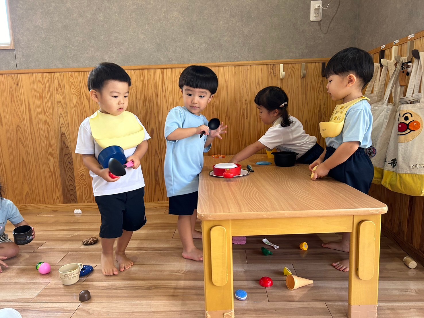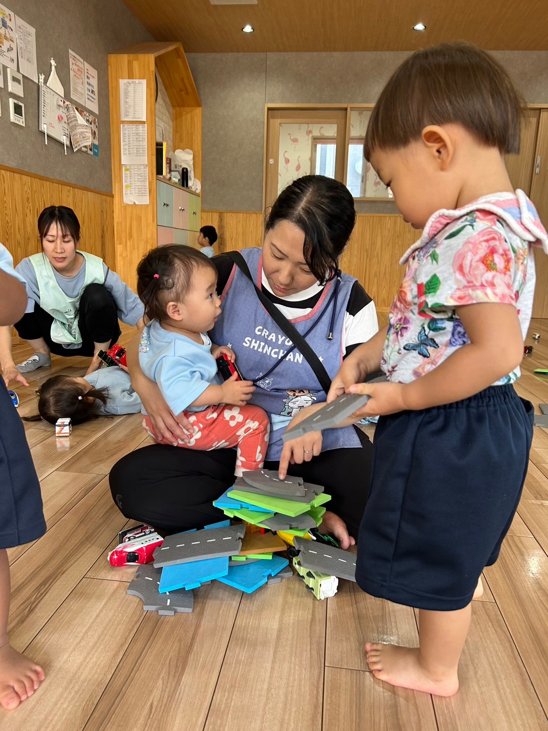 初めは少し緊張気味でしたが、いつもと違う玩具やお友だちに目がキラキラ✨一緒に仲良く遊んでいましたよ🤗