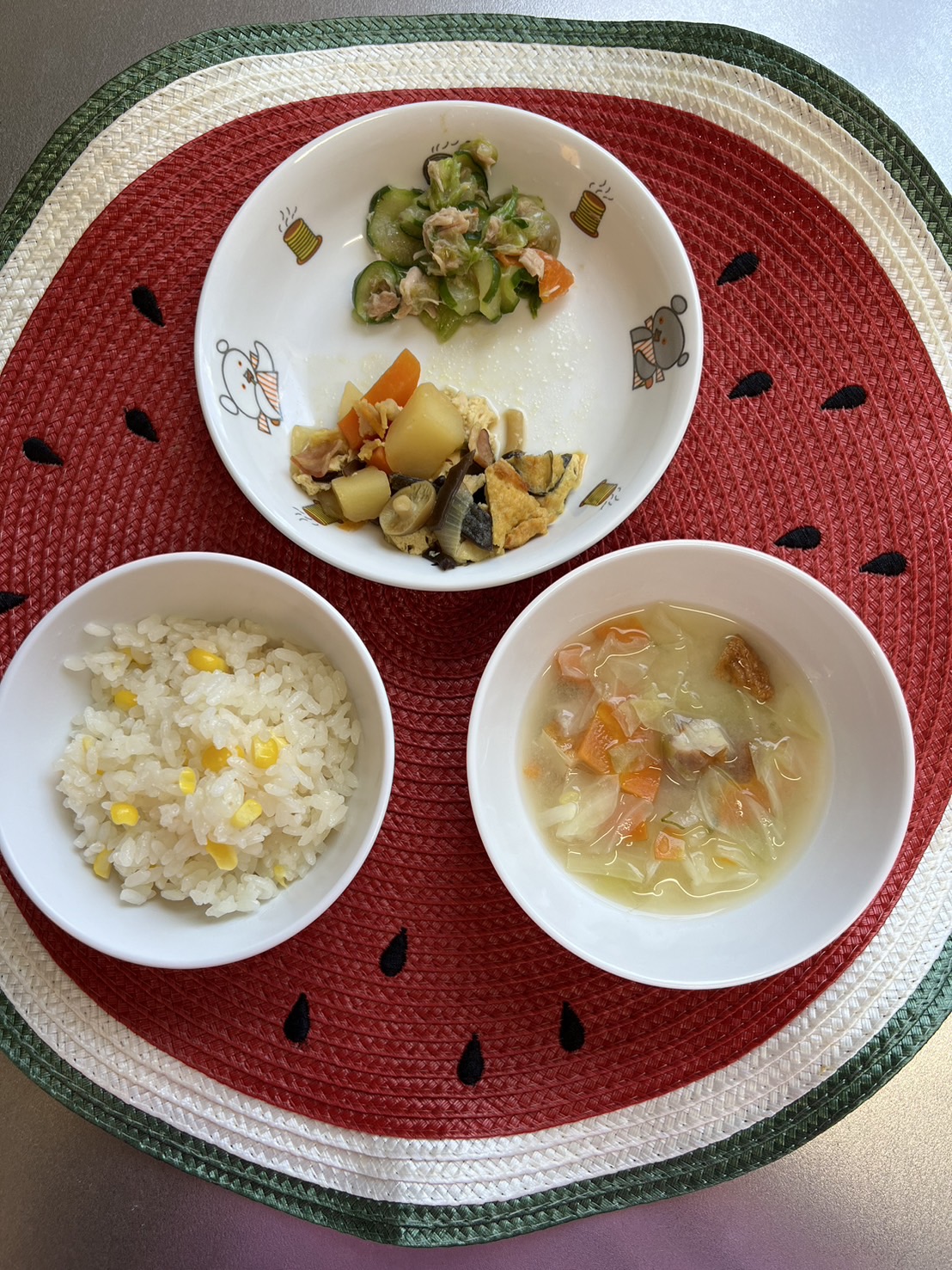 ひよこ組さんは、お部屋をのびのびハイハイしながらままごとのおもちゃでゆっくり遊びました🍳👨🍳【福津園の今日の給食です】