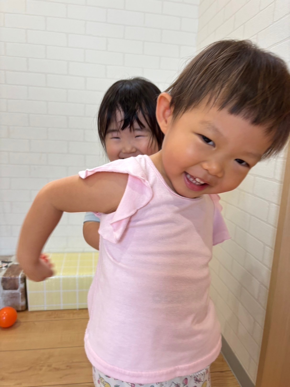 朝の会から元気に「はい元気です☺️」と大きな声でお返事してアピールする福津園のお友だち🤗朝の会からとてもカッコ良い姿が見られましたよ💕