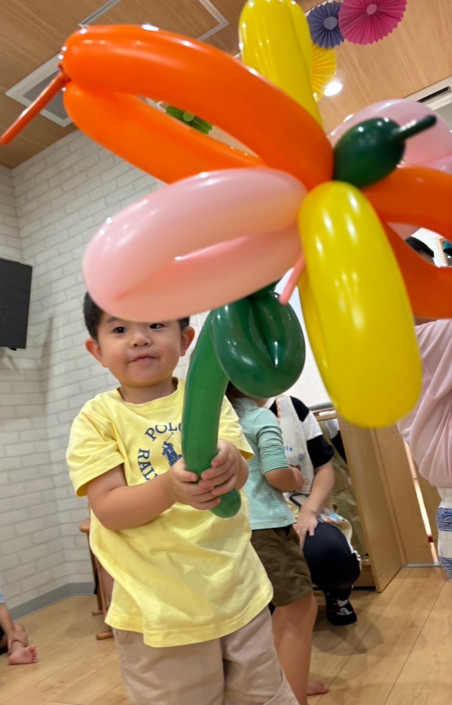 バルーンでカラフルなお花を作ってくれて、福津園のお友だちのお目目はキラキラ🤩