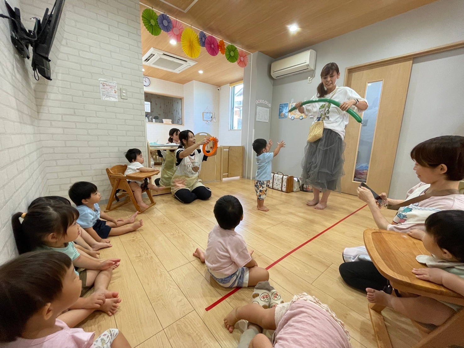 最後にバルーンでハンドルを作ってもらい「バスに乗って🚌」に合わせてドライブにレッツゴー💨みんな上手に運転できました👏💓