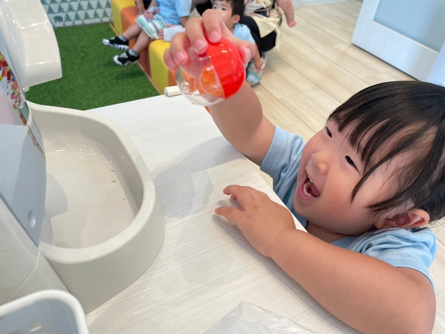 ご褒美のガチャガチャをもらって、誇らしげに保育園に帰りました😎