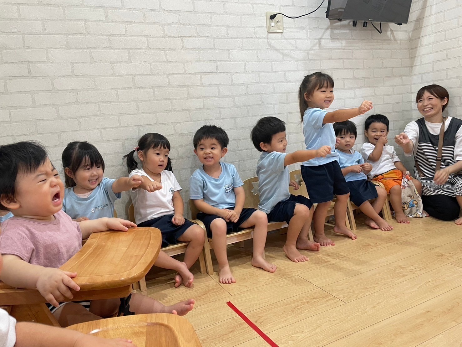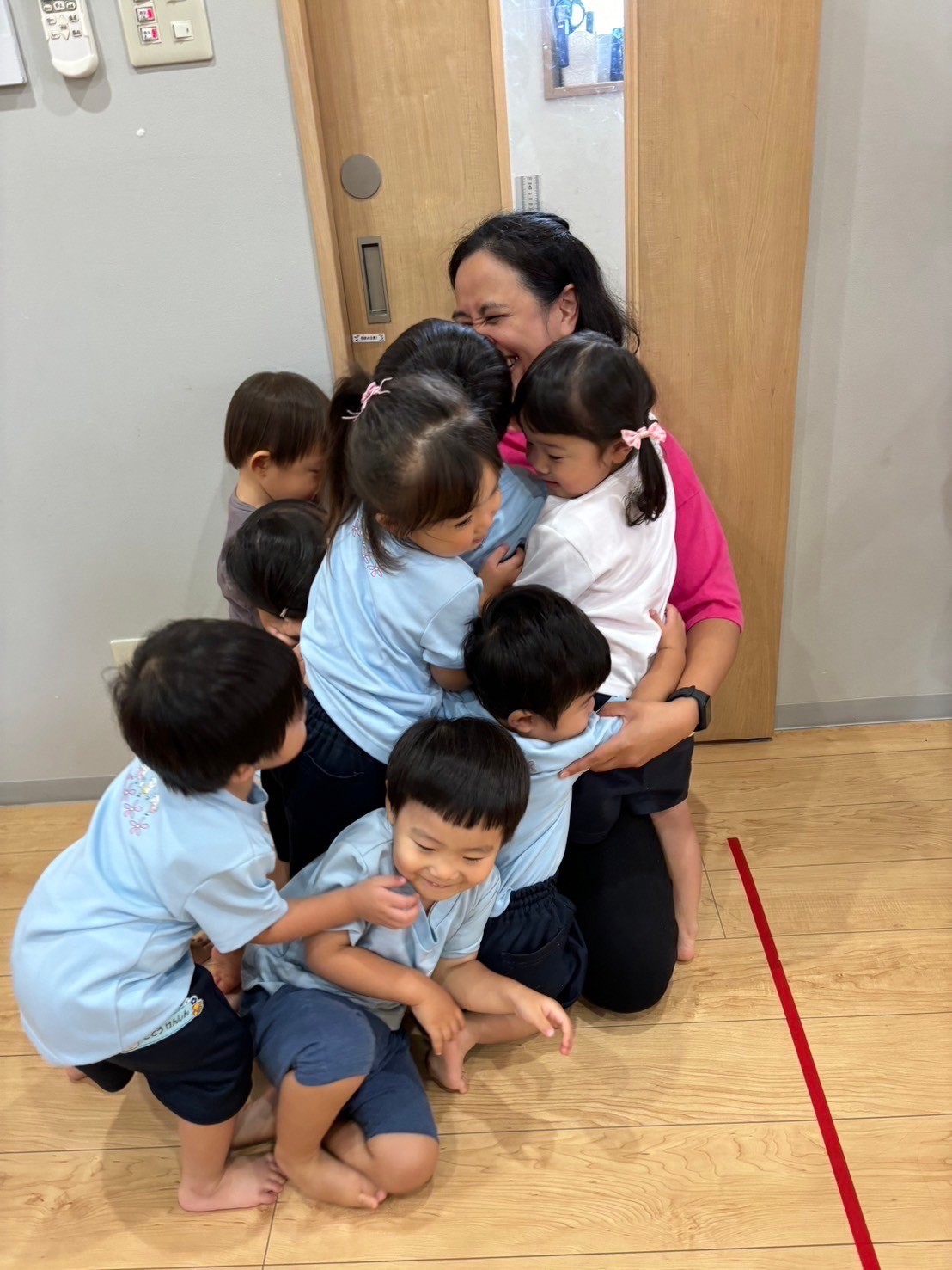 最後のチャリナ先生へのハグ(ハグ)を今か今かと待っているみんな🤭大きな声で挨拶してみんなチャリナ先生の元へと駆け寄っていきました🥰