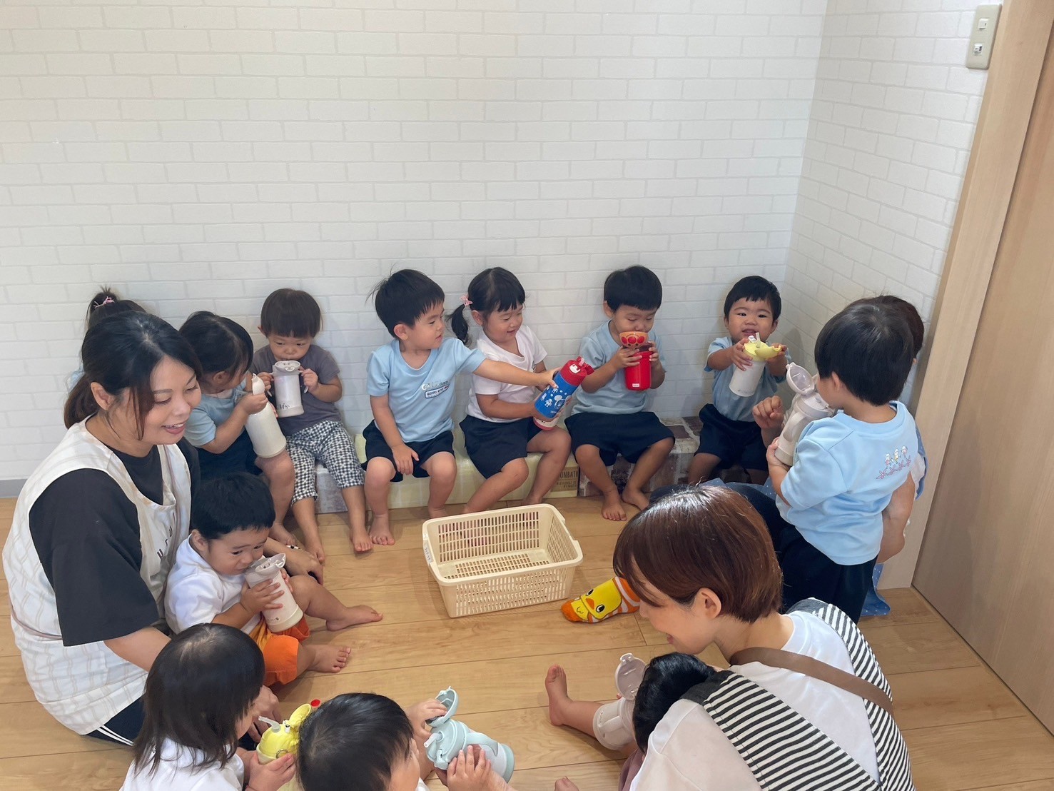 今日も朝から元気いっぱいで、朝の会の前からすでに汗をかいてるお友だちがたくさん😆みんなで輪になってお茶を🥂かんぱーい🥂✨してスタートしました🤗