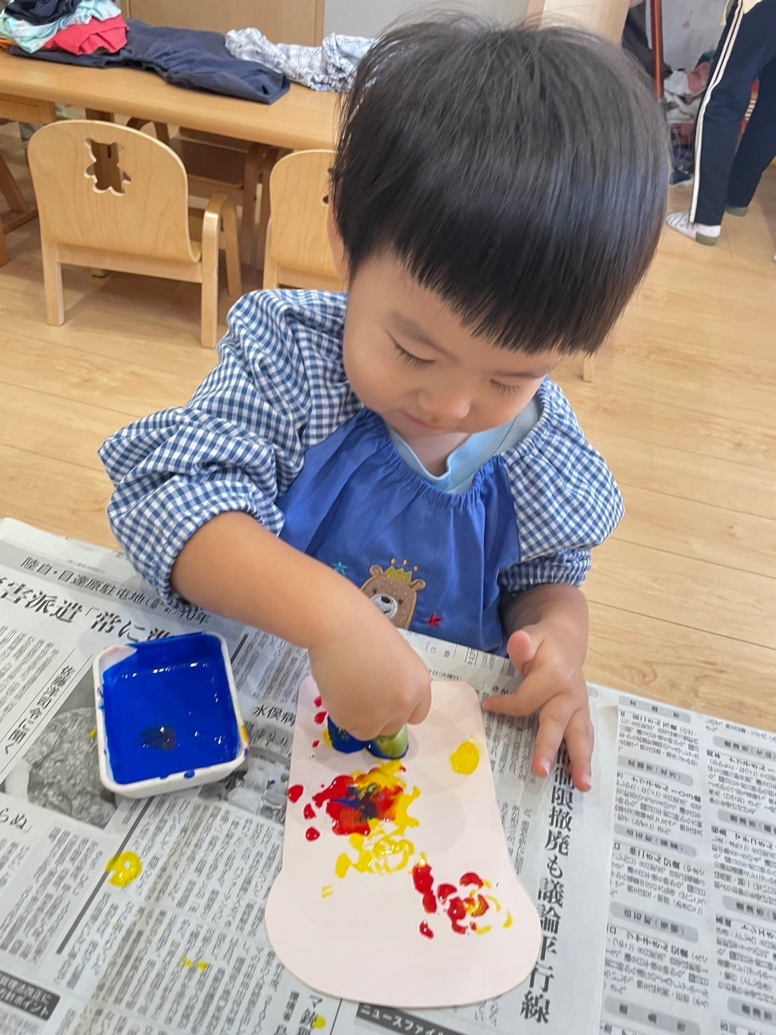 好きな色だけを使ったり、慎重にポンと押したり、「お花みた〜い🌼」と発見したり🤭