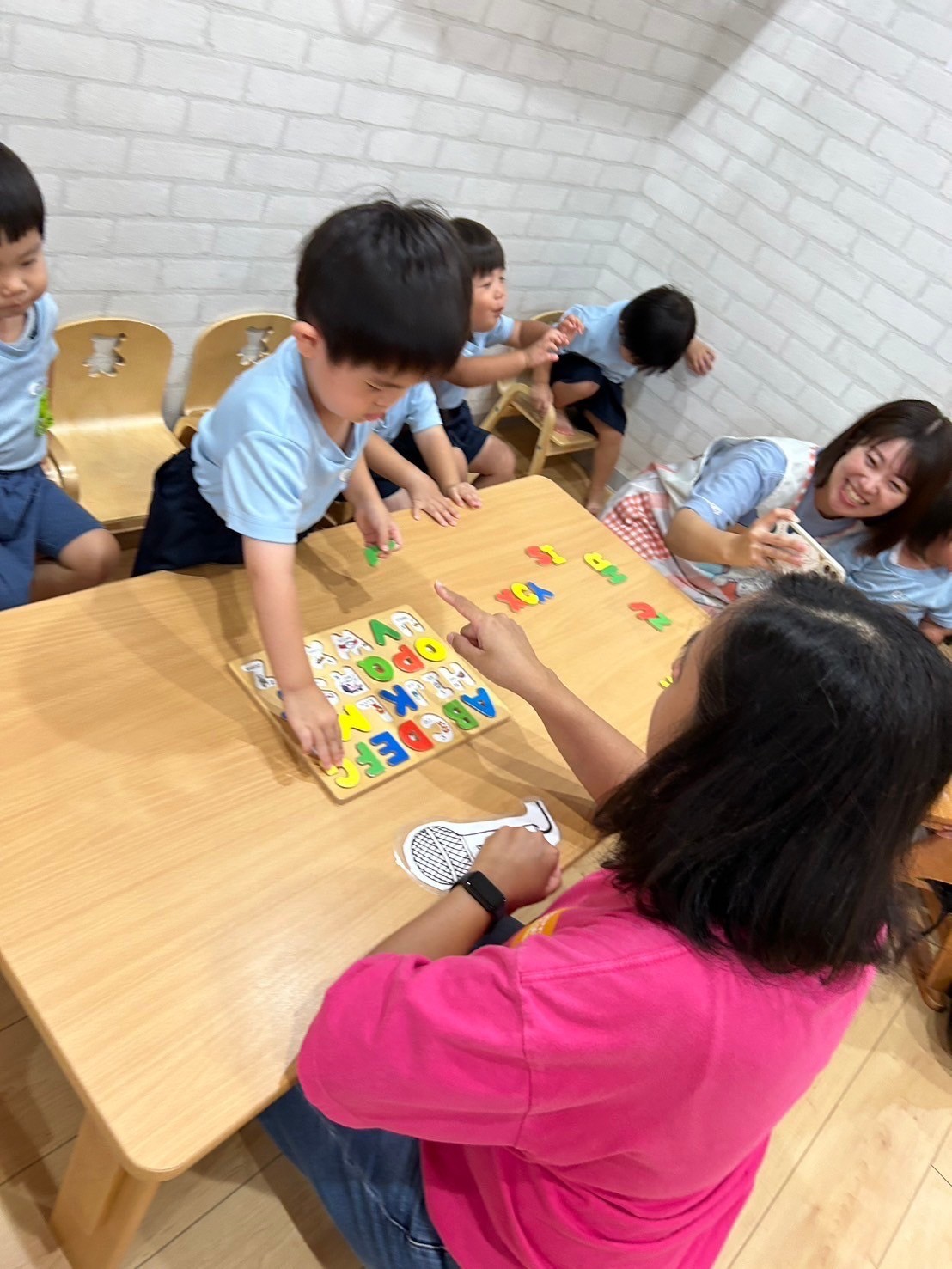 難しいアルファベットのパズルでしたが、上手に発音して型にはめることができて、とっーてもかっこよかったです👏💓