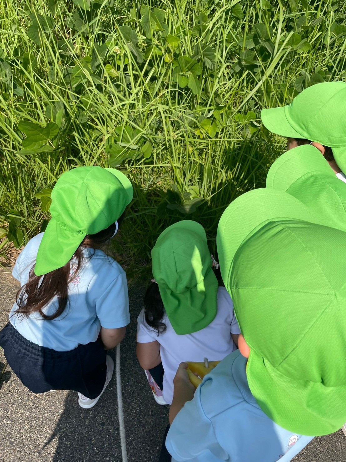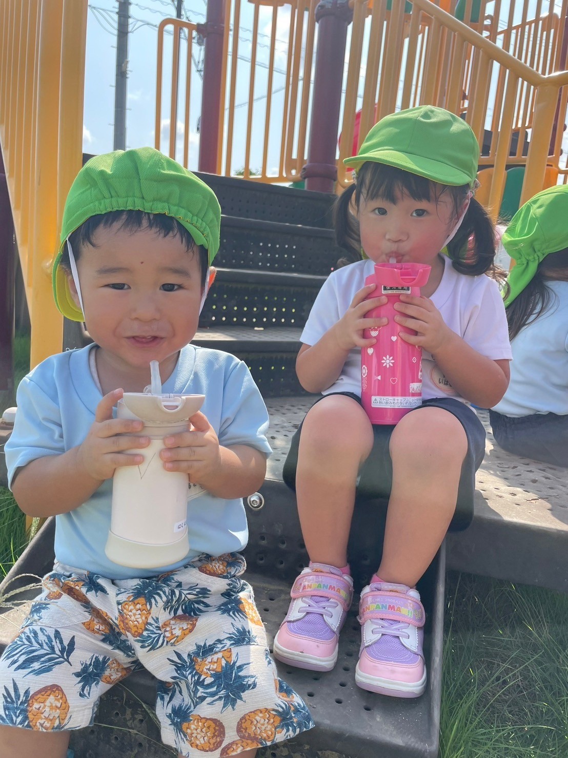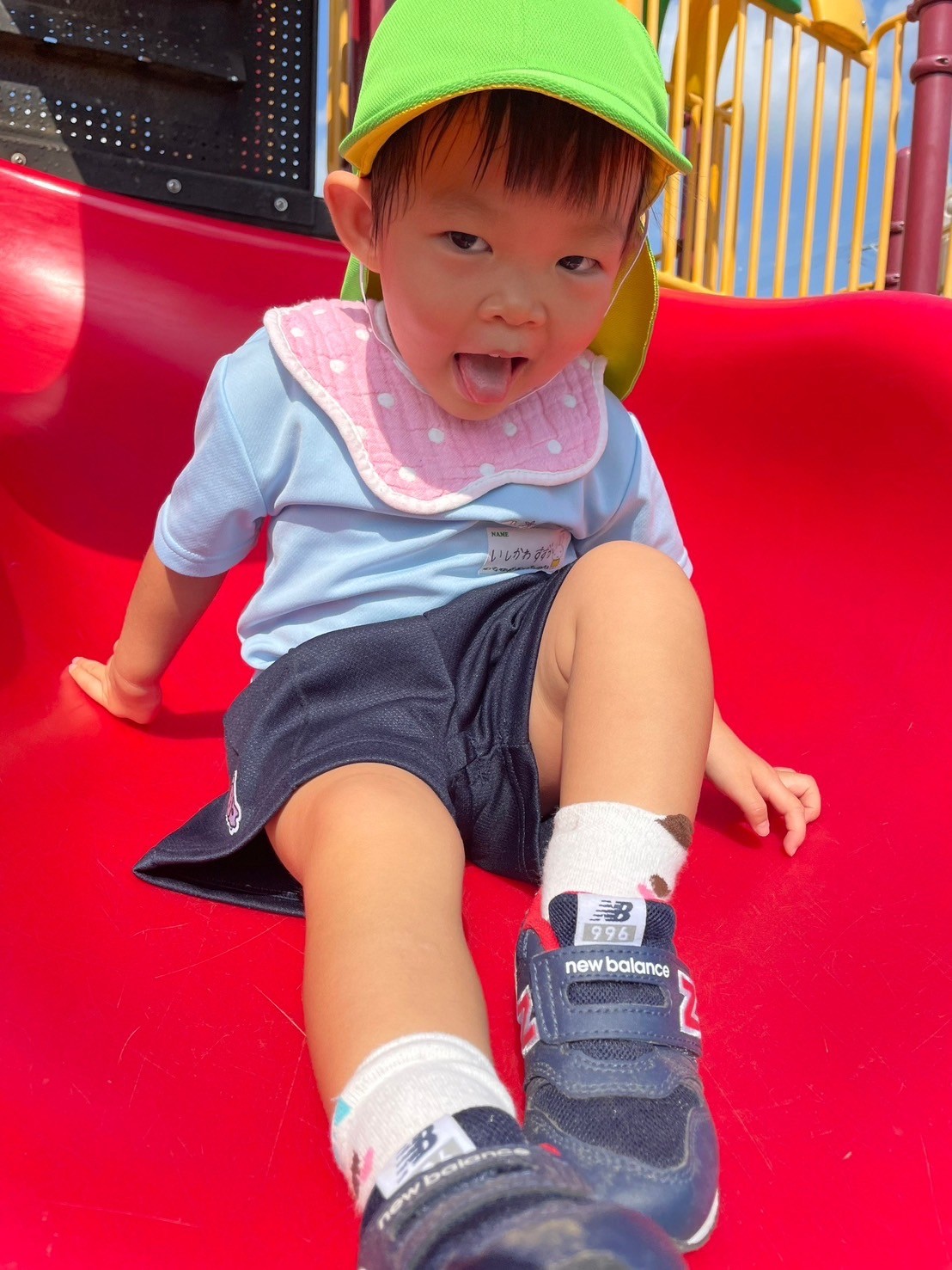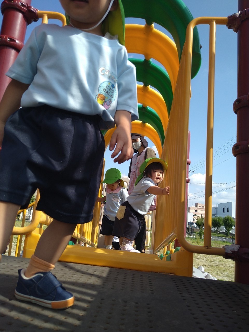 バッタ(バッタ)を観察したり、滑り台🛝を友だちを誘いながら楽しく滑っていましたよ🤗