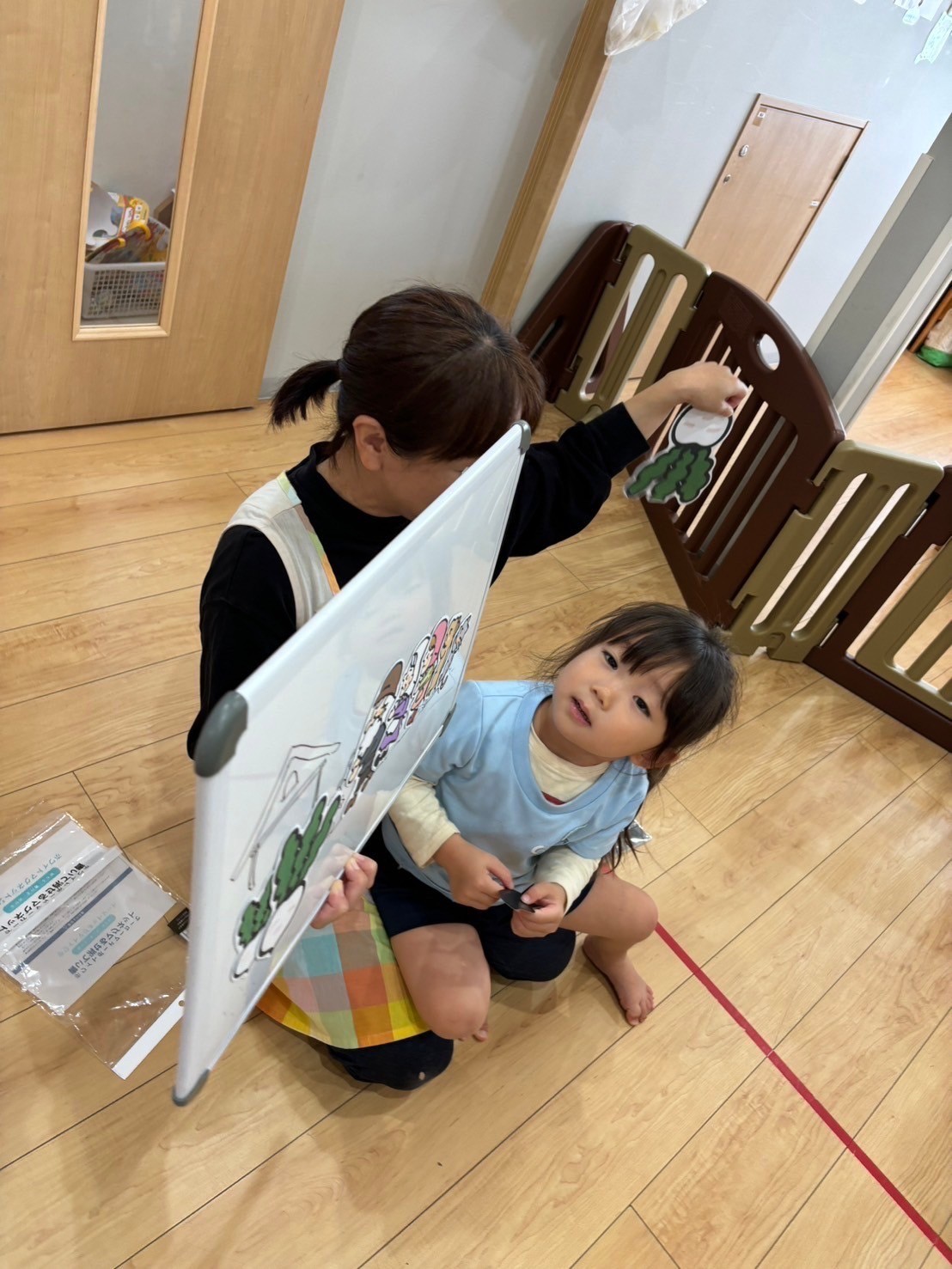 大きなかぶのマグネットシアターでは、「うんとこしょ!どっこいしょ!」の掛け声と共に、身体と手をつけてひきぬく姿が🤭