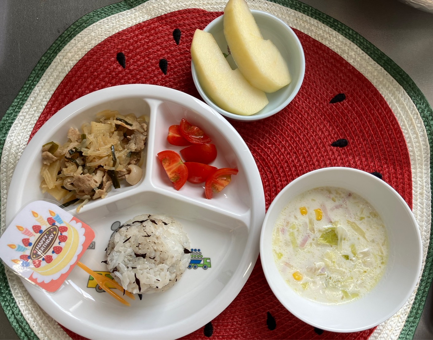 なかなかちぎることが難しいようでしたが友だちと助けて合いながらちぎっていました😄その話し合っている姿にホッコリ🥰でした‼️【福津園の今日の給食です】