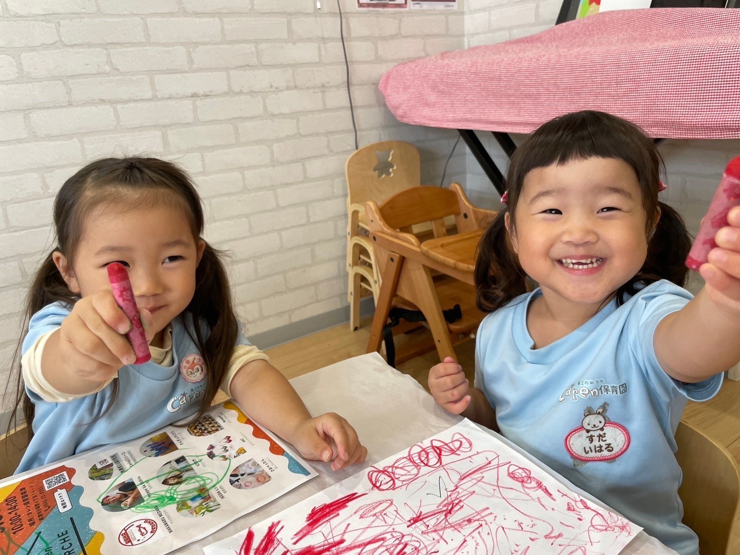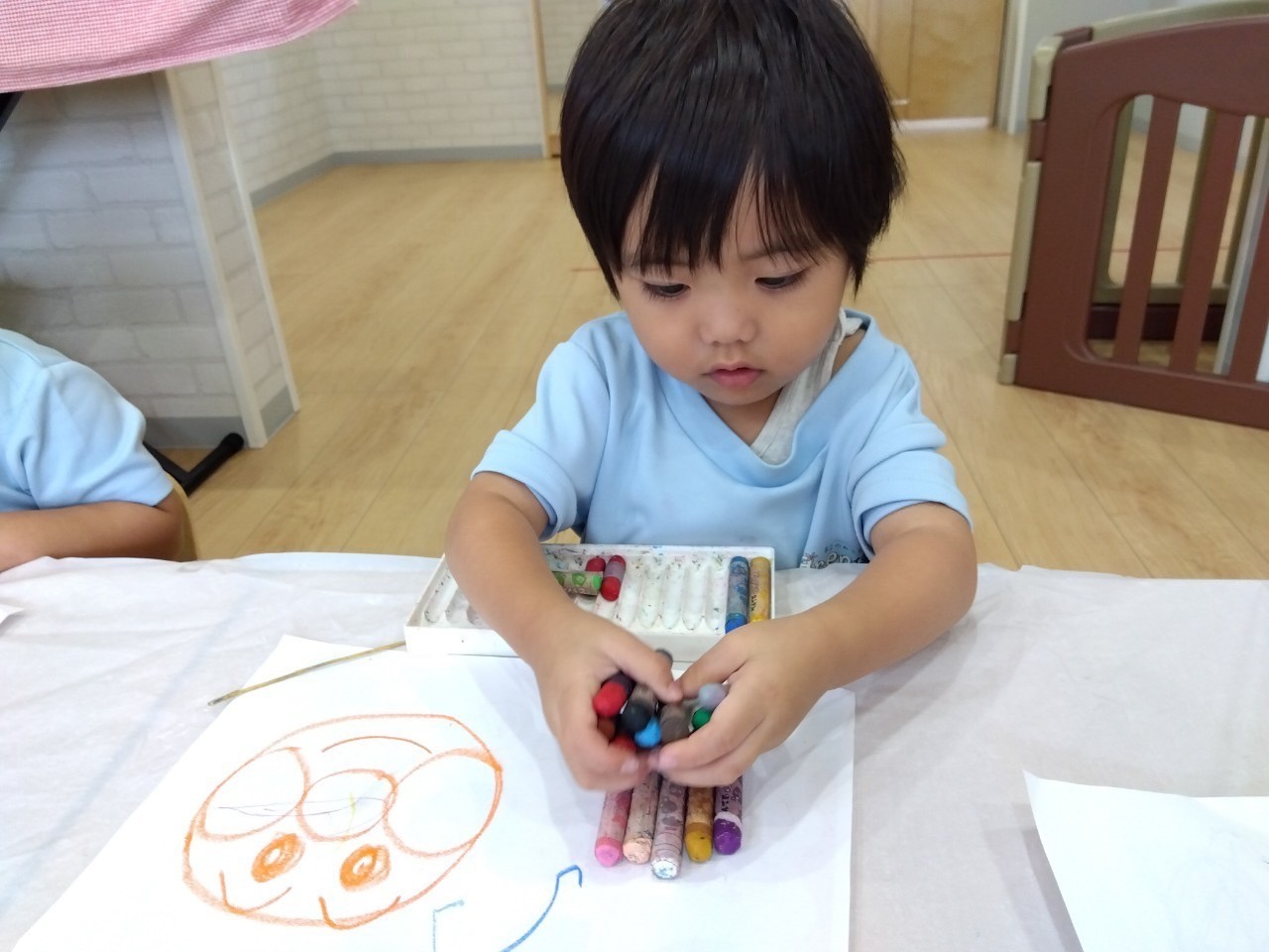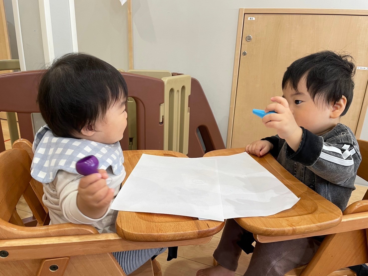 今日はクレヨンでお絵描きをしました🖍始める時に約束事をしてから遊び始めると、友だちと仲良くクレヨンを貸し借りする姿が👏💕自由な発想で好きな物を描く子、色んな色で重ね塗りをして上手に塗り潰して描く子、クレヨンを並べることを楽しむ子とそれぞれ集中して楽しみました✨