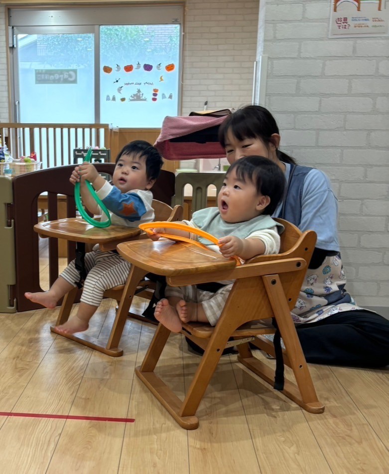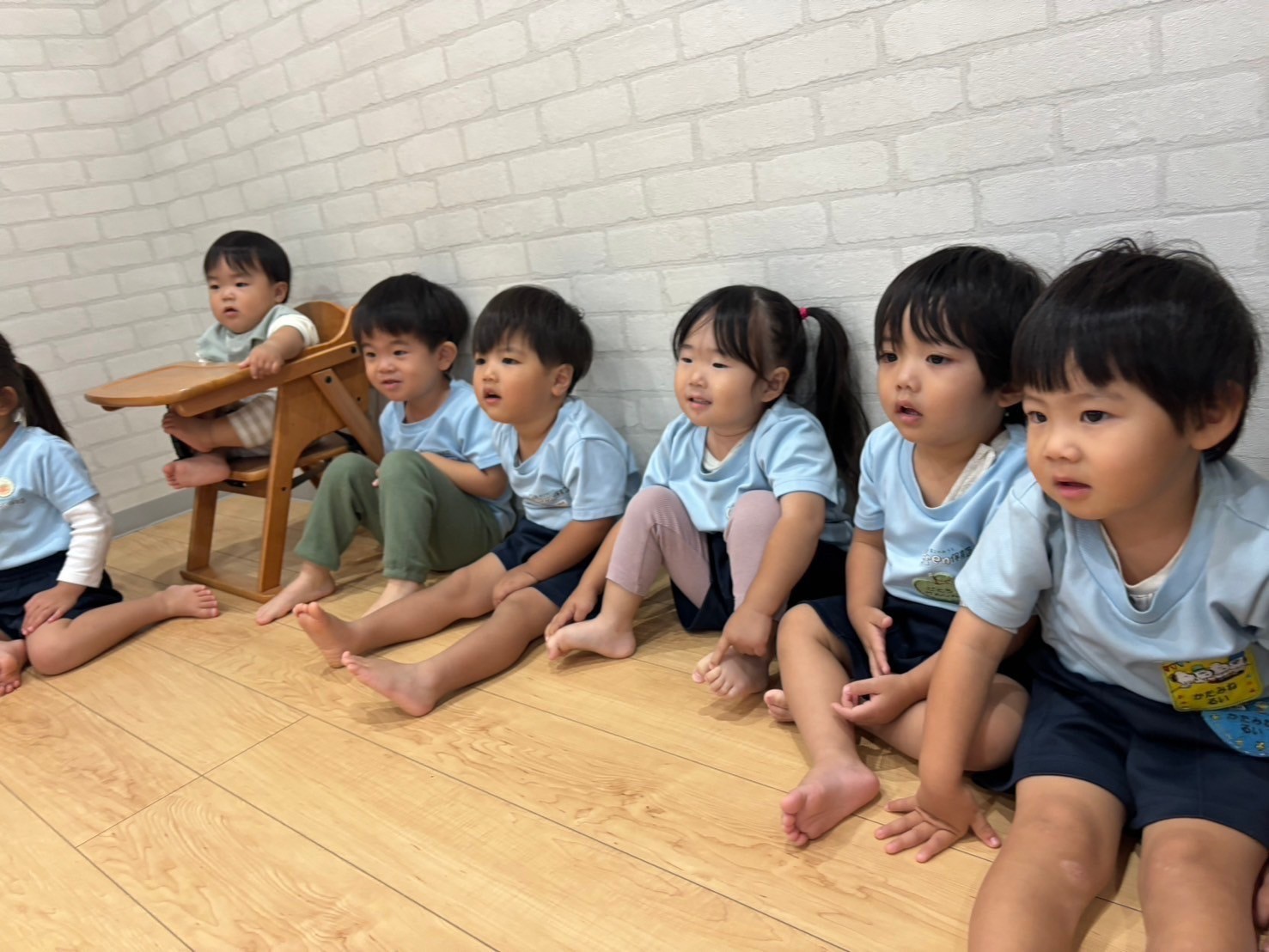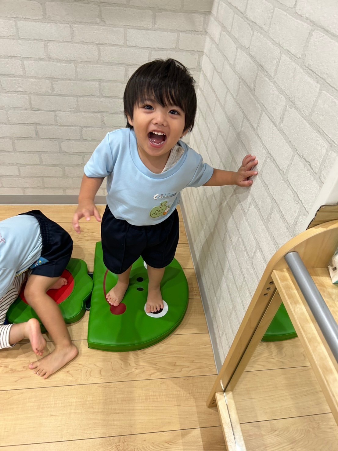 いちごの絵合わせカードからスタートしいろんなフルーツ🍎が登場して「りんご!みかん!ぶどう」など元気いっぱい答えていましたよ🤩👏