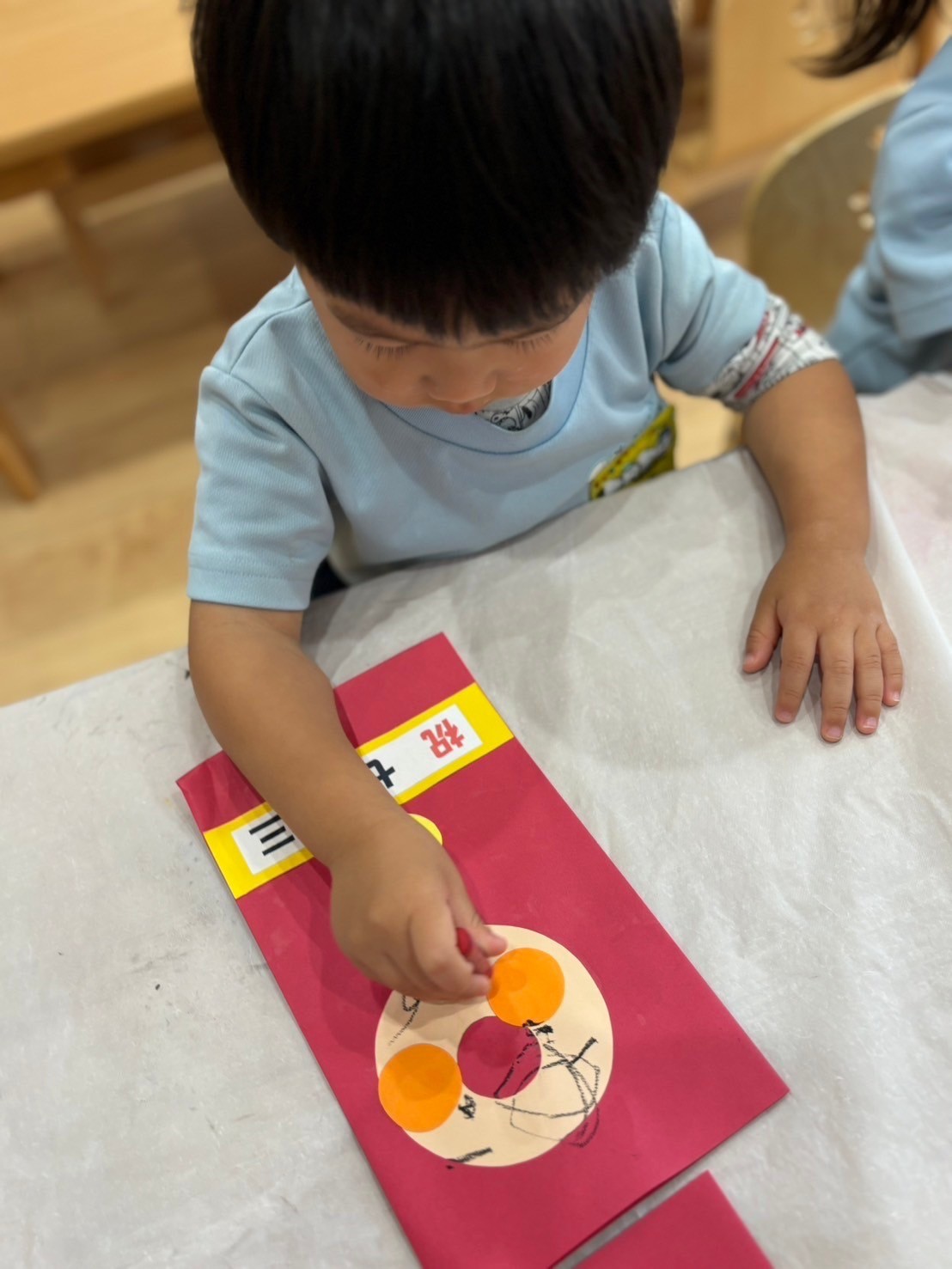 その後は、七五三の飴袋🍬のアンパンマンに目を描きました👀可愛いアンパンが出来て嬉しそうな子どもたちでした🥰💕