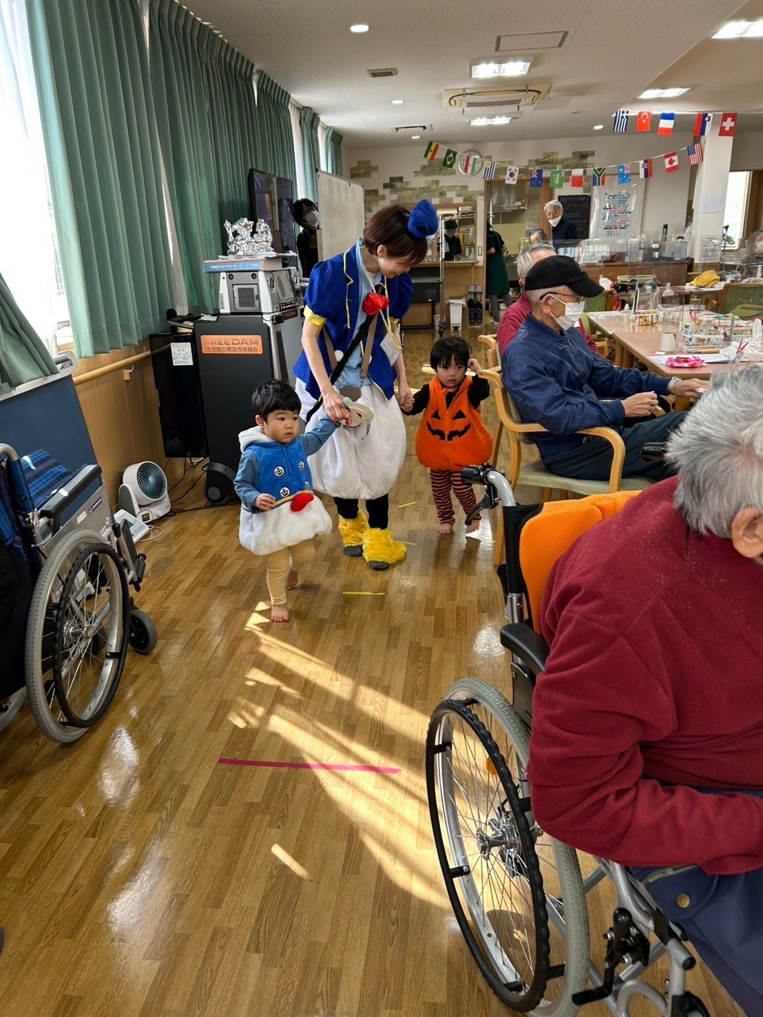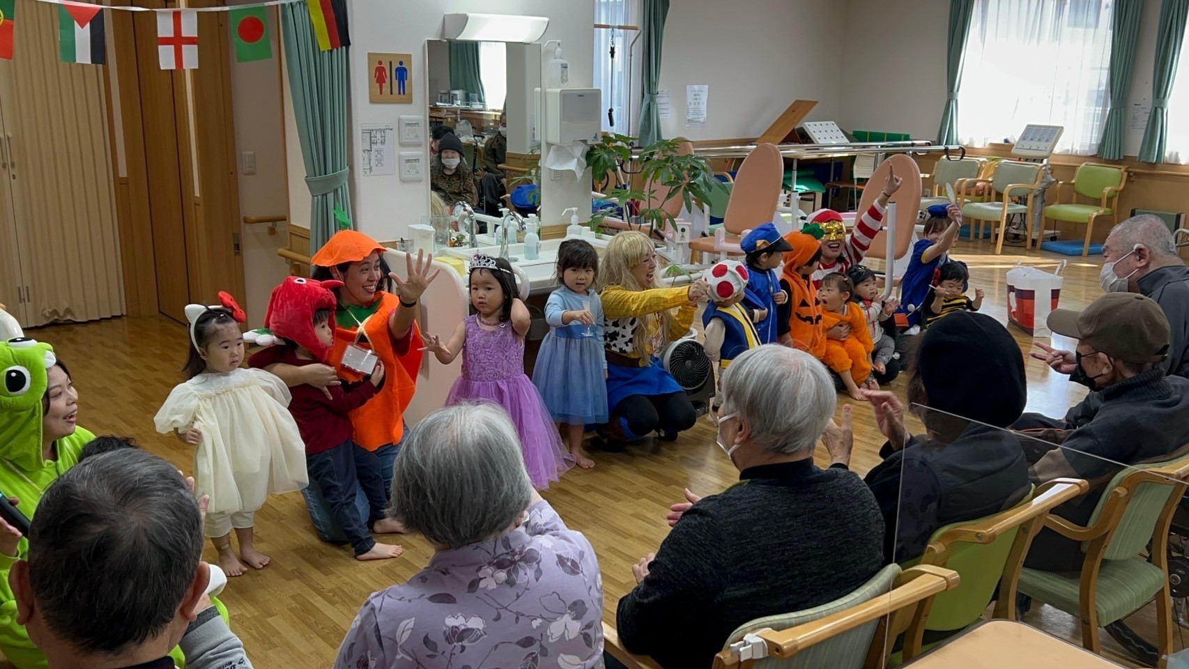 スタッフさんや、おじいさんおばあさん達が温かく迎え入れて下さったおかげで、場所見知りや人見知りで泣く子もおらず、みんなとびきりの笑顔を振りまいていましたよ🤗