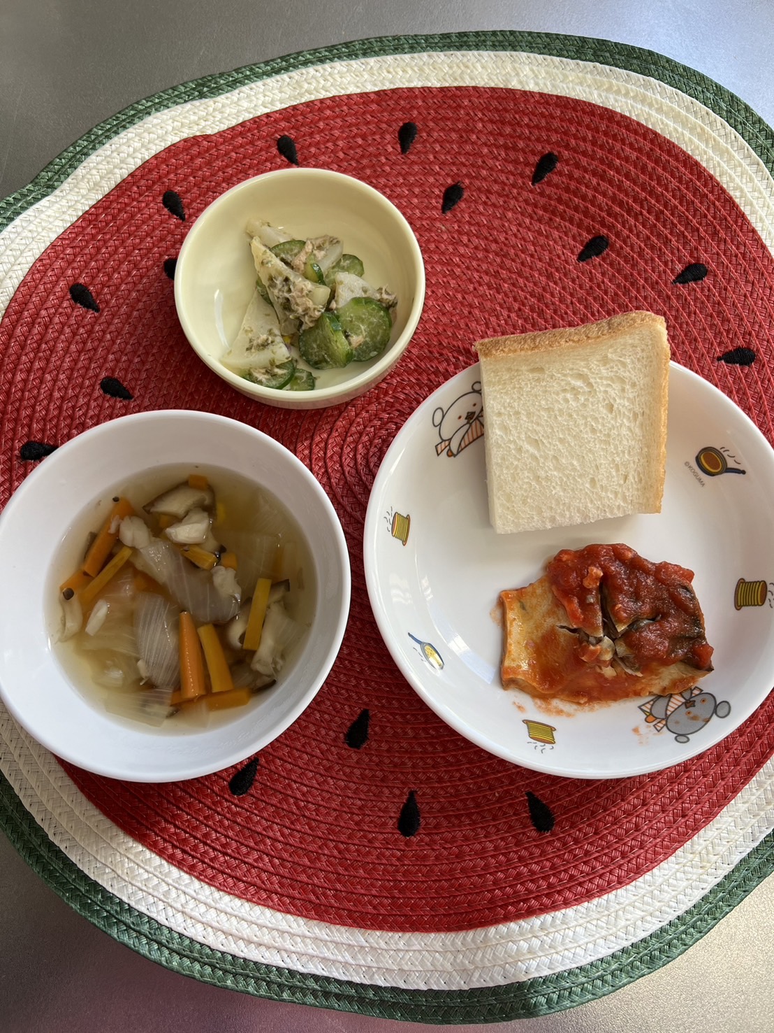 その後は、公民館でみんなで追いかけごっこをしたり、クローバーを摘んだり楽しく過ごしました🍀【福津園の今日の給食です】