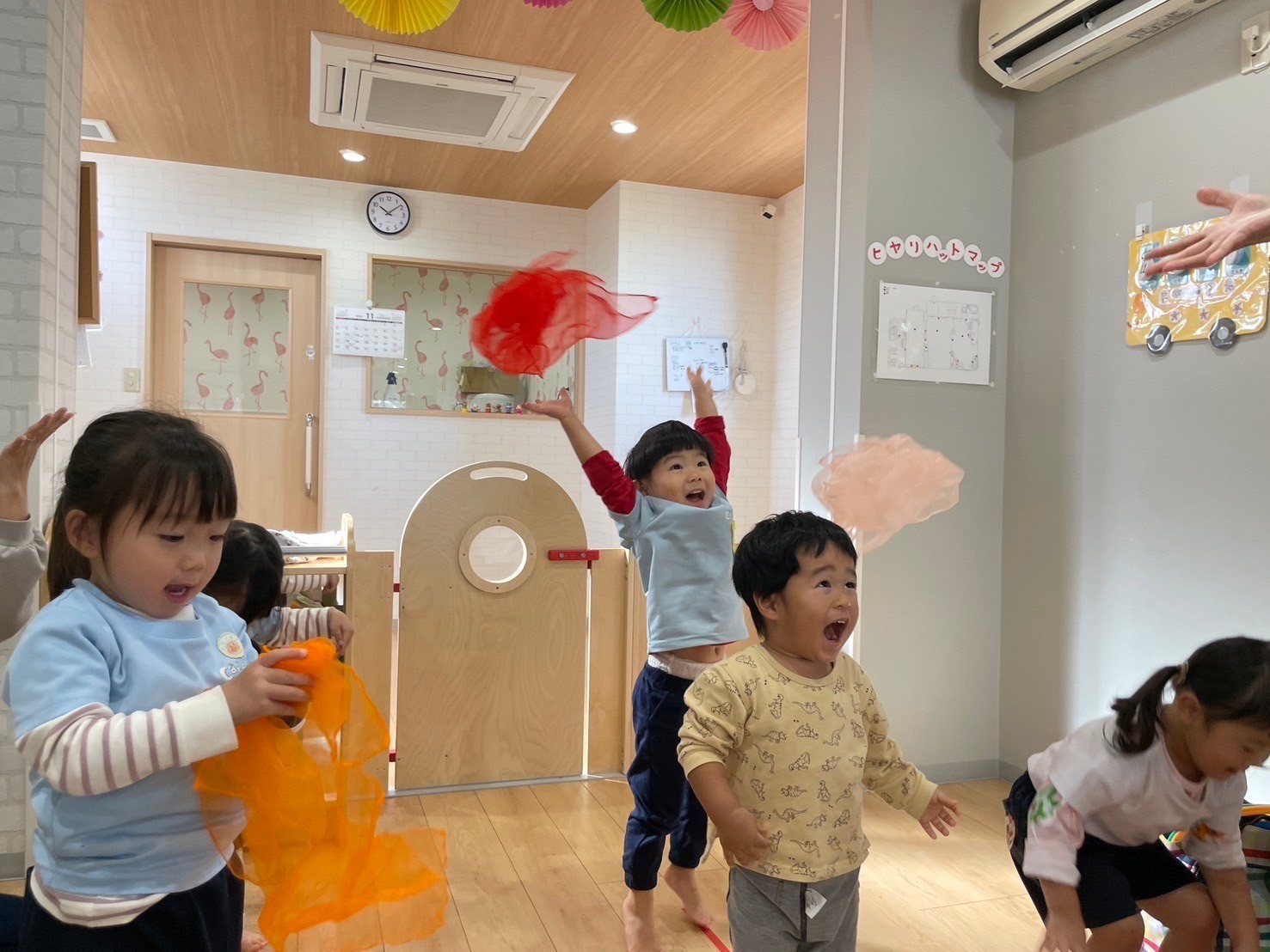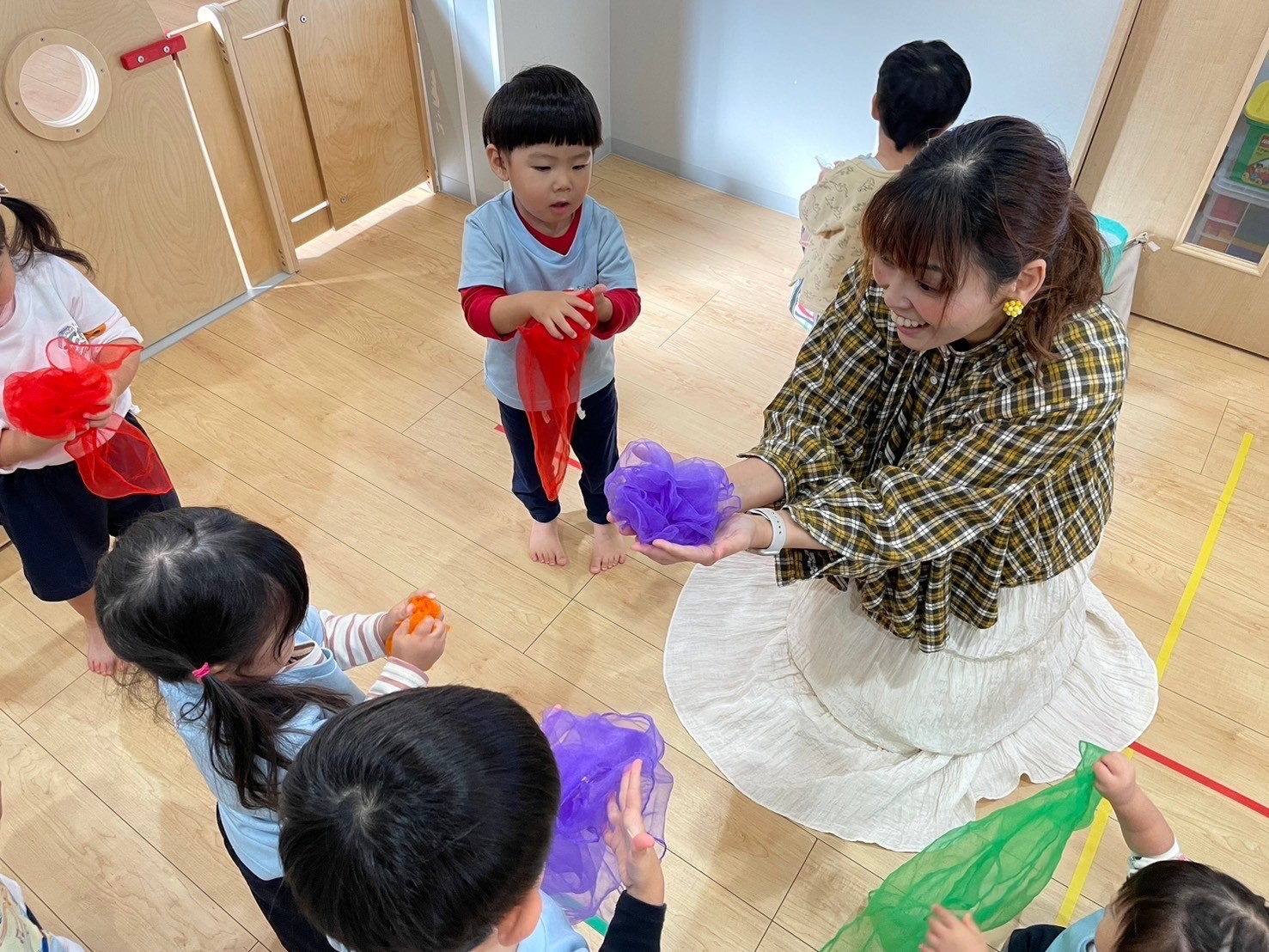 だーいすきな卵のマラカスやシフォンスカーフ、カラーリングに触れ、ノリノリで身体を動かして楽しみましたよ💃💓🕺