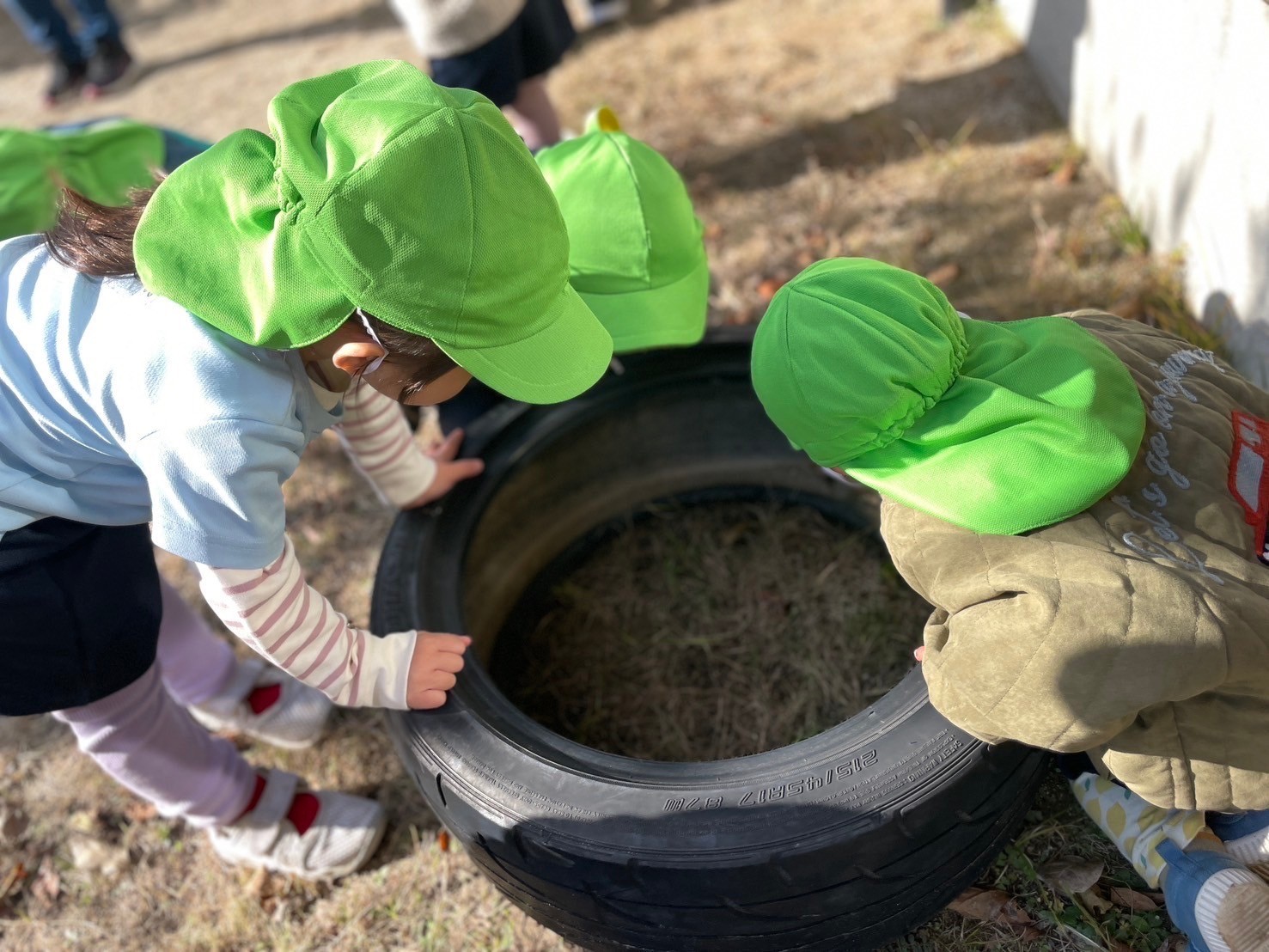 久しぶりの公民館は雰囲気がガラリと変わり、落ち葉がいっぱい🍂赤や黄色の葉っぱを集めたり、ちょいとタイヤ🛞を動かしてみると‥‥‥ダンゴムシや、アリがいっぱい隠れていました🐜❄️🐜みんな冬の準備中かな⁉次に会える時は春かなぁ〜🌸