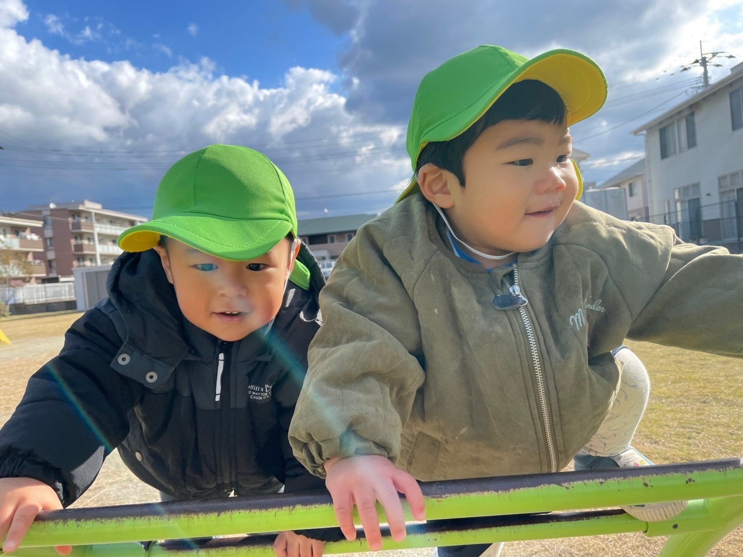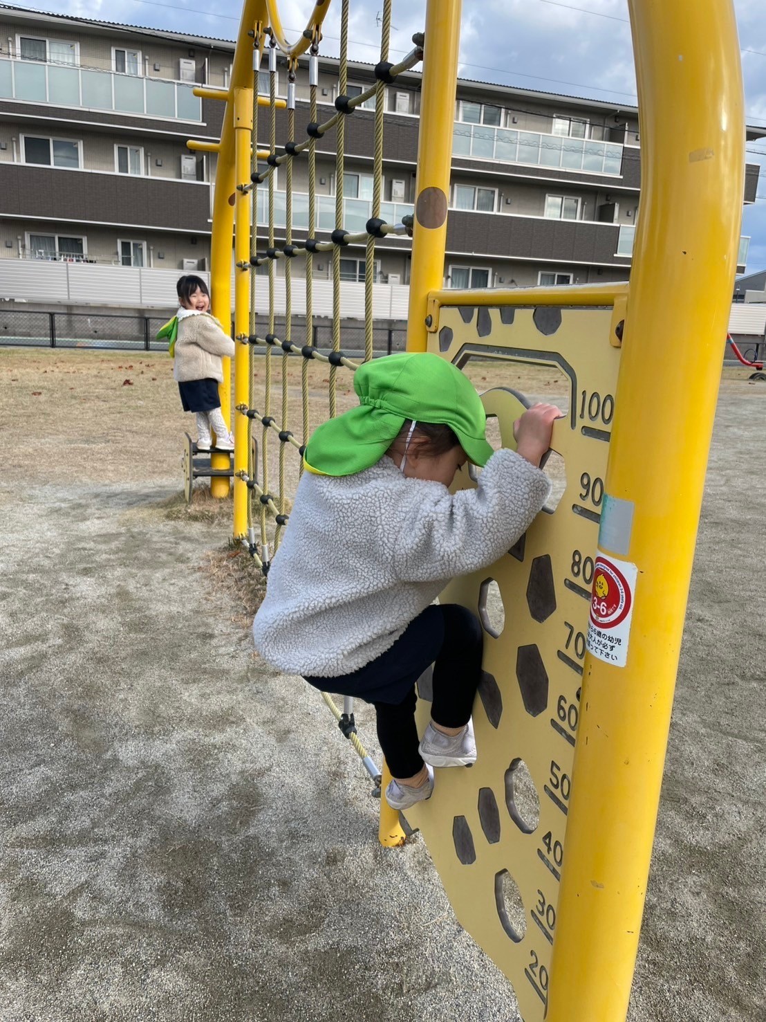 公園では、すべり台やシーソーを楽しんだり、アスレチックネットをどんどん登って行くお友だちに刺激を受けてチャレンジしてみようと頑張るお友だちもいましたよ💪