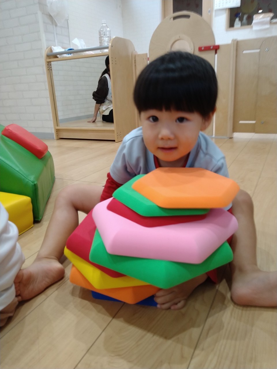 カラフルなバランスストーンを重ねたりふわふわした感触を楽しんでいましたよ👏🥰【福津園の今日の給食です】