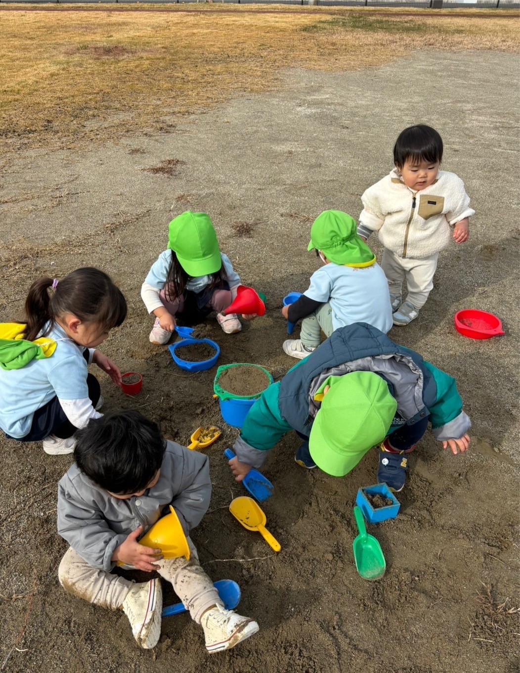 久しぶりにふみづき公園にお散歩に行きました🎵雨で濡れていて滑り台では遊べませんでしたが、広い公園でのびのびと体を動かしました❣️ボールを上手にキックしたり、追いかけっこをしたり、湿った砂を使って砂遊びを楽しみました🥰ロウソクをさして立派なケーキ🎂も出来上がりましたよ🙌🏻