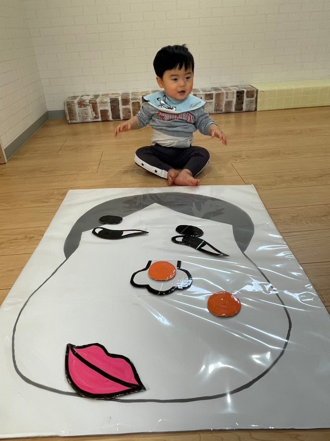 福笑いでは、目、鼻、口を自分たちが好きな場所に貼り、色んなお顔の福が完成しました👄