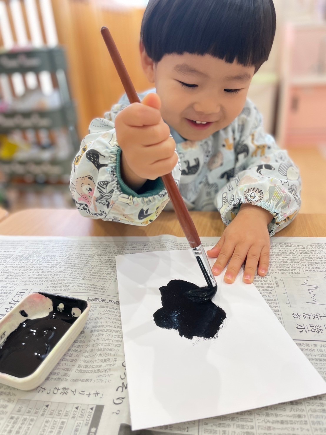 その後は、お正月にちなんだ遊び書き初め🖌️や福笑い👄をしました🎍