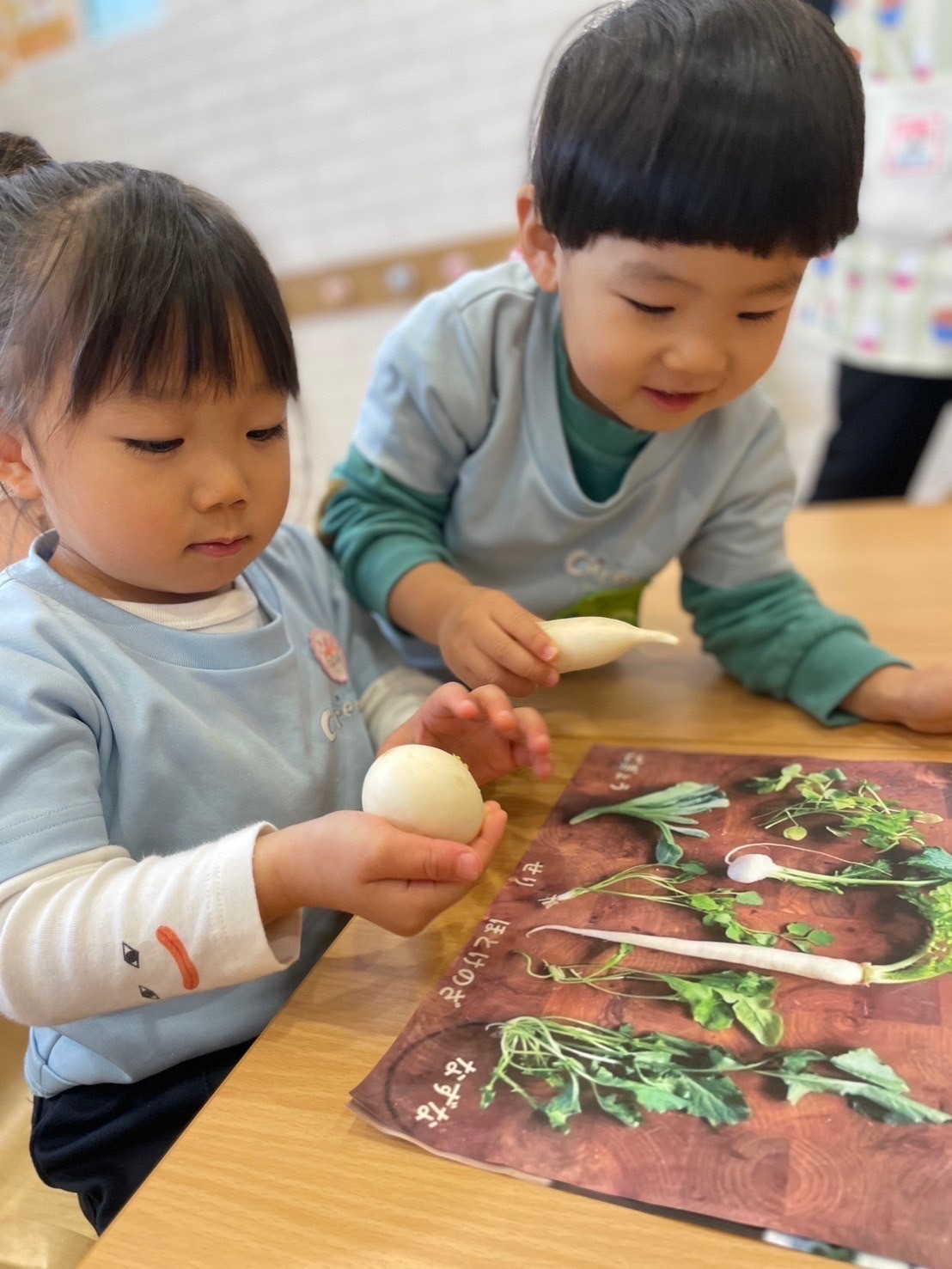 匂いを嗅いでみたり、すずなをみて「これ、うんとこしょどっこいしょのやつ?💨」と積極的に七草に触れていました🌱
