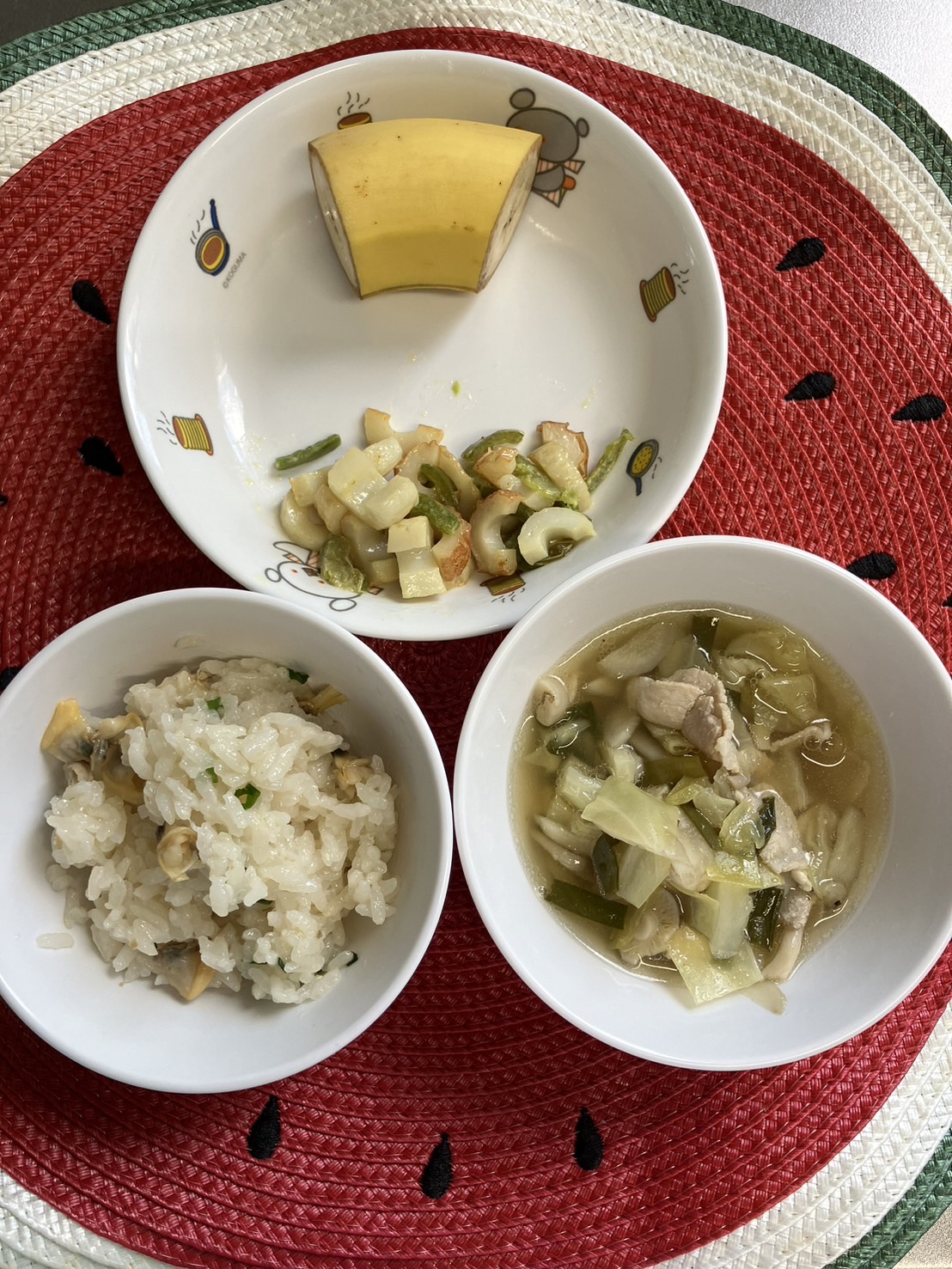 帰り道は、「お腹すいたねー😋給食なんだろー?🤭」と大好きな給食を楽しみに帰りました🤤🥣【福津園の今日の給食です】
