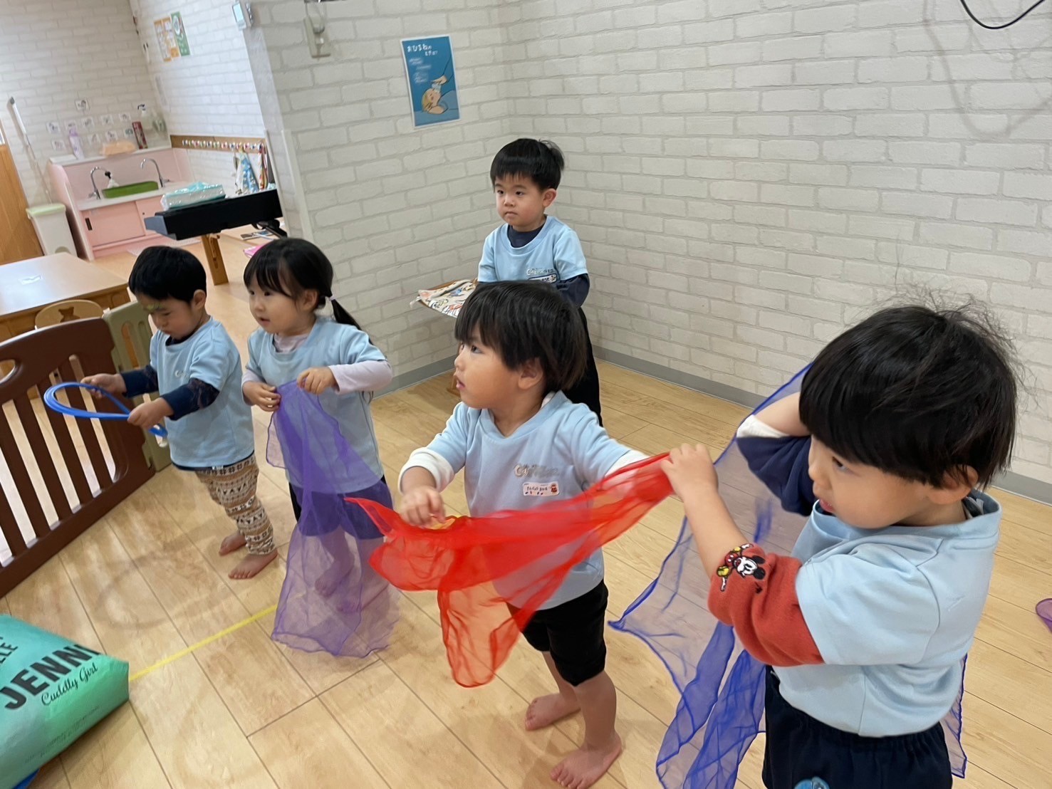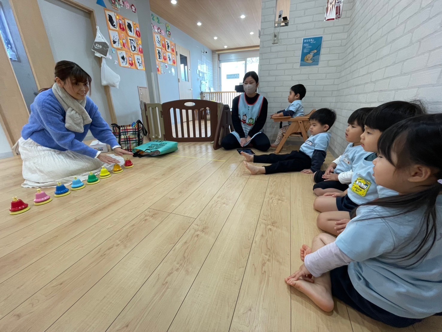 好きな色のベルを選んで、「それいけ💨アンパンマン」をみんなで演奏したり、音楽に合わせてシフォン布を揺らしたり大好きなアンパンマンソングにノリノリの福津園のお友だちでした🧒🏻👧🏻🎶