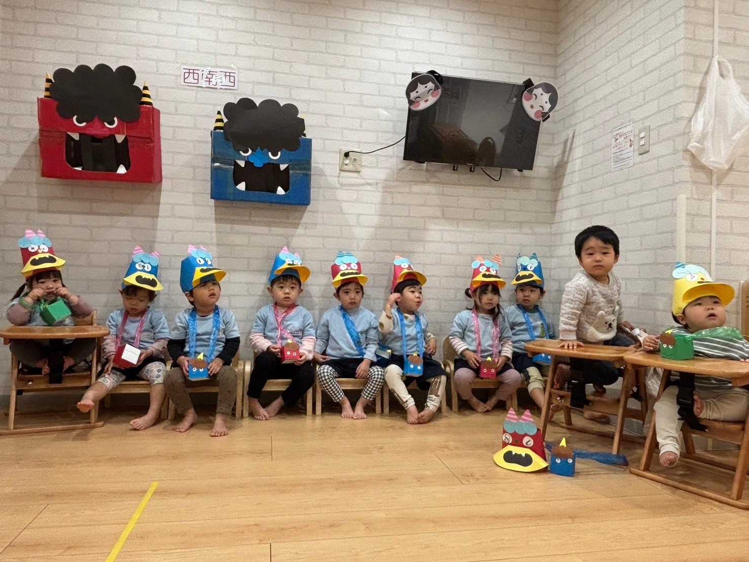 いつも朝の会で元気いっぱい鬼の歌を踊っている福津園のお友だち🗣️✨🎵