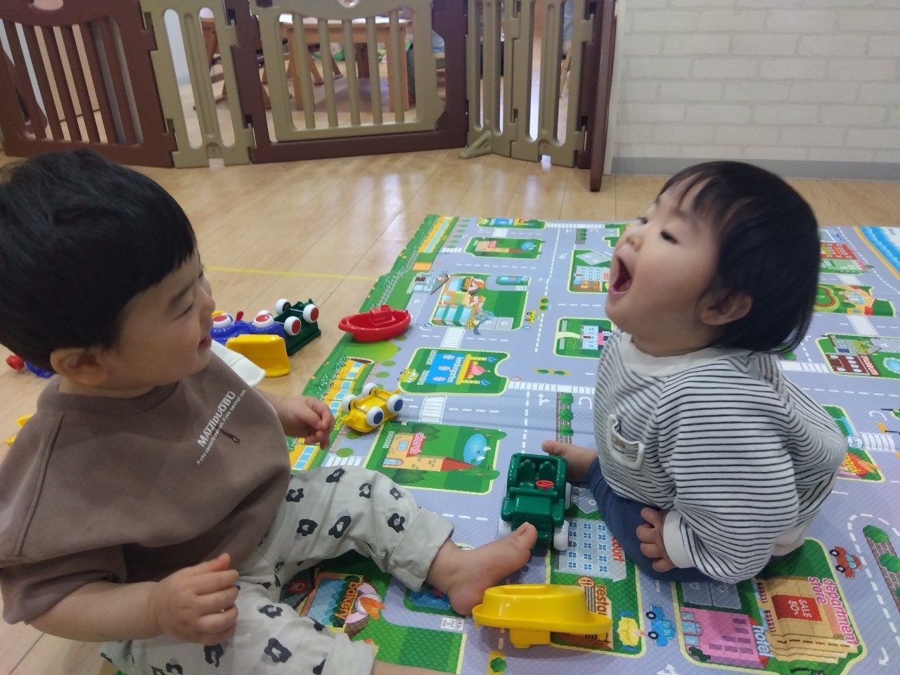 その後は 列車のおもちゃで遊びました✨🚃✨マットの上で列車を走らせて、消防署や公園までドライブ🎶仲良く遊ぶことができました❣️