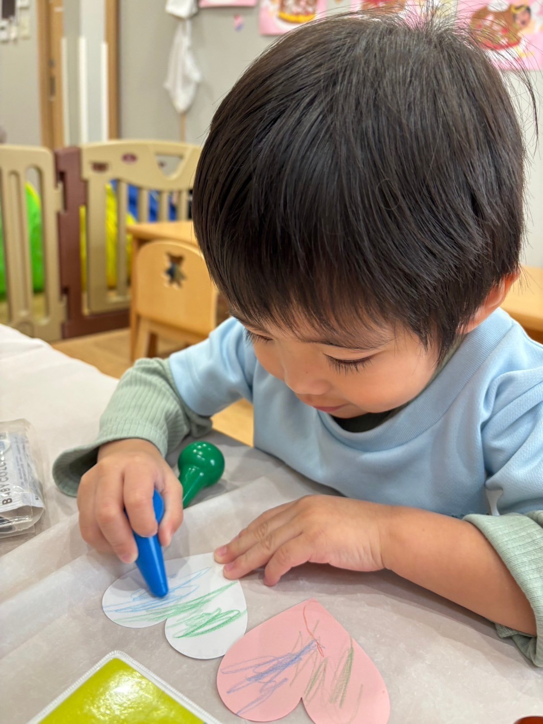 室内サーキットの横ではバレンタインの製作も行いましたよ💝