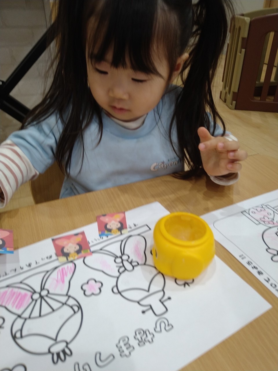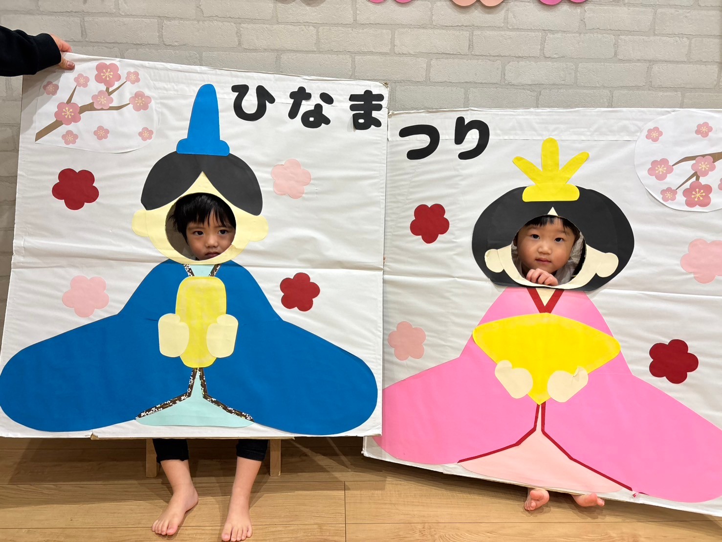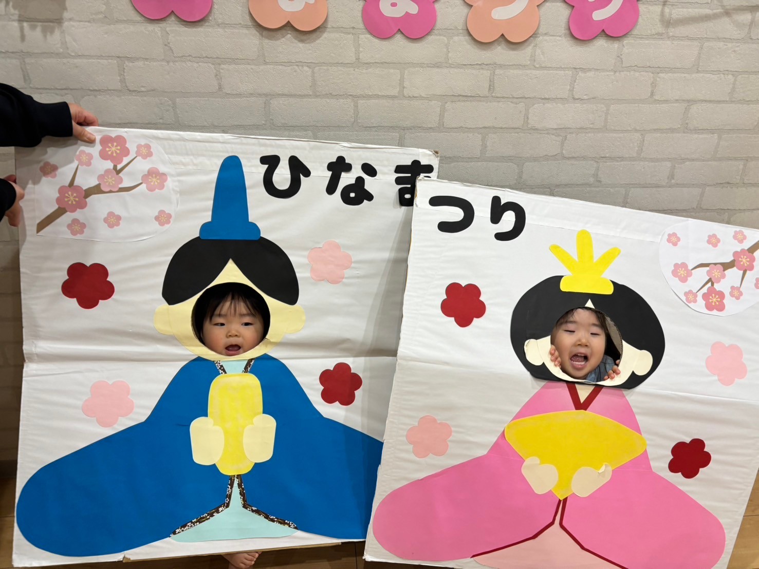 お話のあとは、顔ハメパネルでかわいいお雛様🎎お内裏さま🎎に変身しました🧙✨とってもかわいいお雛様とかっこいいお内裏様でしたよ😍お雛様のお顔を描く塗り絵もして、ひな祭りを楽しみました✏️