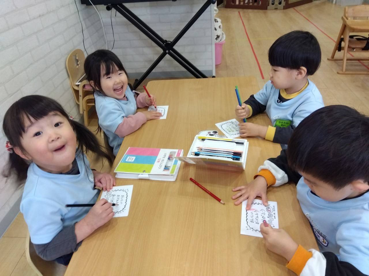 卒園式は終わりましたが、まだ最後の登園日まで1日1日を大切に福津園のお友だちと過ごしていきたいと思います😊💓今日は、朝おやつの後に抜き打ちで地震の避難訓練をしました!!警報音が鳴ると驚いたお友だちでしたが、泣き出したり慌てることなく保育者の声を聞いて、上手に机の下に隠れることができました😊👍警報音を聞いて、喋らず保育者の顔を見るお友だち、口を押さえて保育者の元に集まるお友だちもいて、今までの避難訓練がしっかり身に付いているなと感心しました✨✨