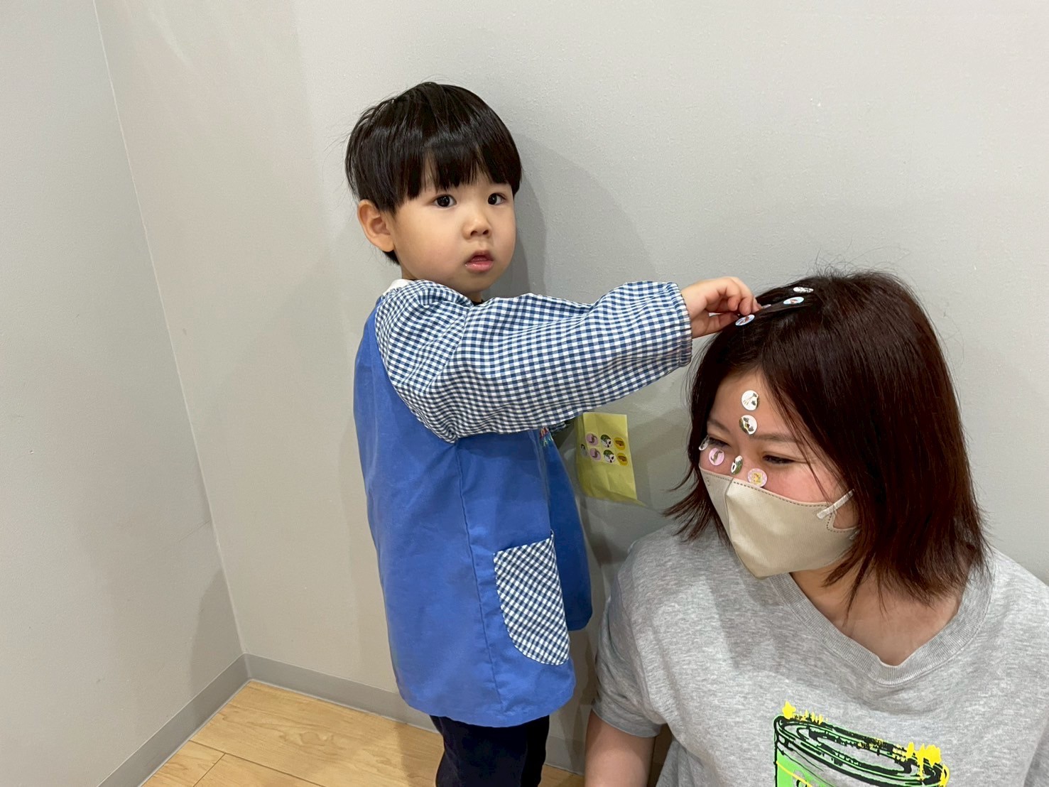 紙では足りず、保育者にもたくさんシールを貼ってケラケラ笑って楽しんでいた福津園のお友だち😂室内でのびのびとゆっくり過ごしました☔️【福津園の今日の給食です】