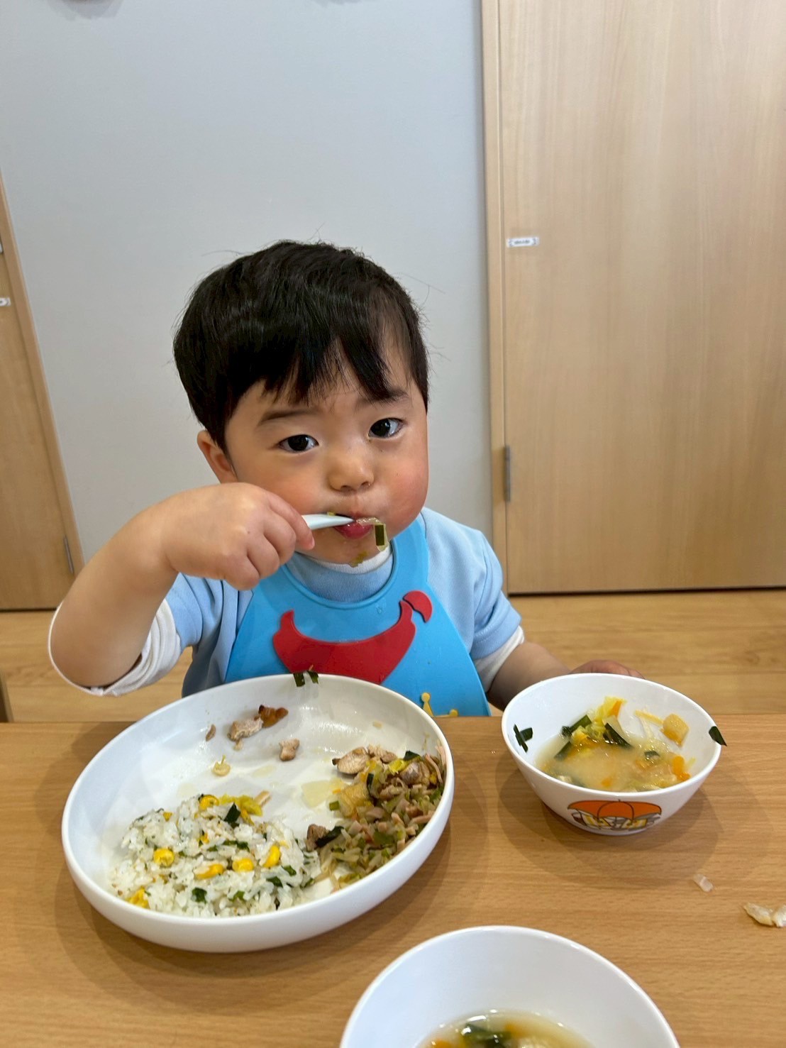 園に戻ると大好きな給食Time❤️お肉も野菜もパクパク食べて、ほとんどの子が完食✨✨