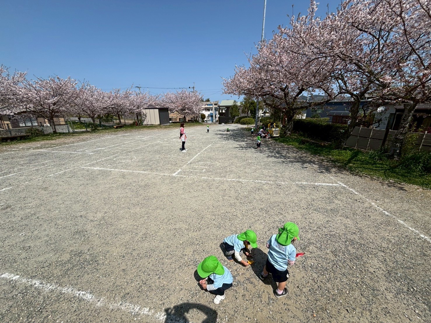 その後は両谷公民館にお散歩に行きました😘満開の桜が風に吹かれて舞っていて、とってもキレイでした🌸子ども達も「さくら〜❗️」「ひらひら〜✨」と嬉しそうに花びらを集めていて、心地良いお天気の中みんなで春を感じることができました🥰ゆっくり外遊びを楽しんだ後は、美味しい給食をパクパク食べましたよ😋