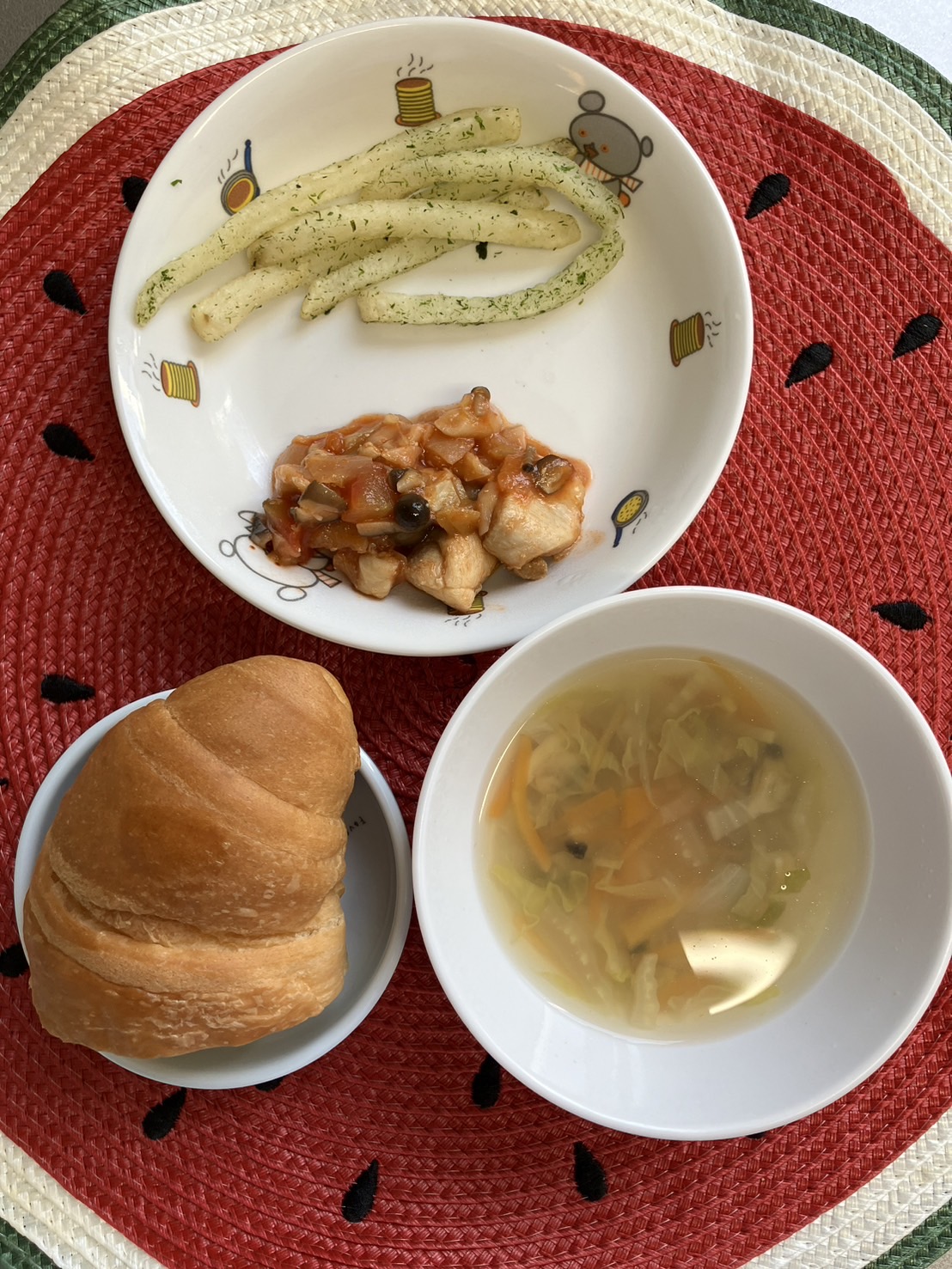 新入園児さんは明日からお昼寝が始まりますね😴💤明日もみんな元気に登園してくれるのを楽しみにしています💓【福津園の今日の給食です】