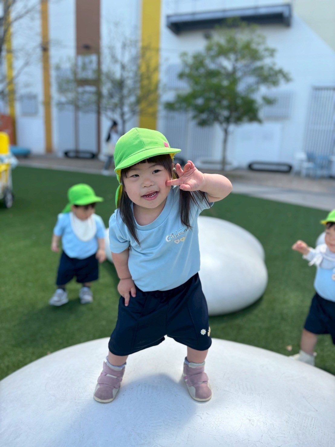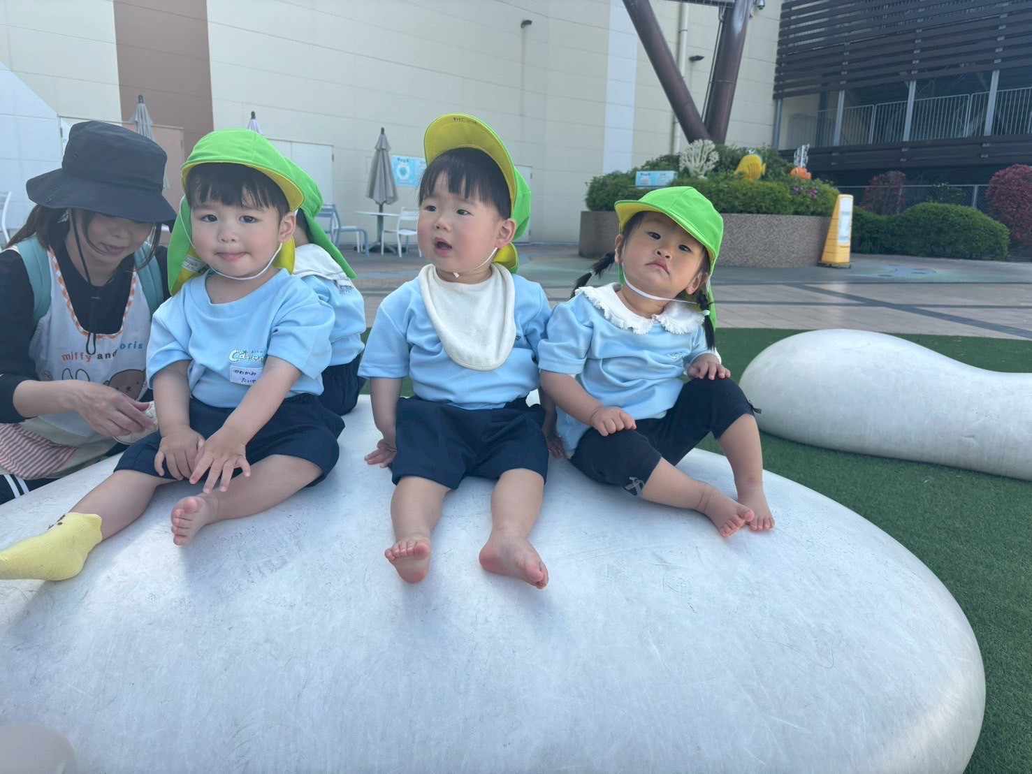 日陰で涼みながらステージの上やふわふわの腰掛けに登ったりたくさん体を動かすことができました🏃