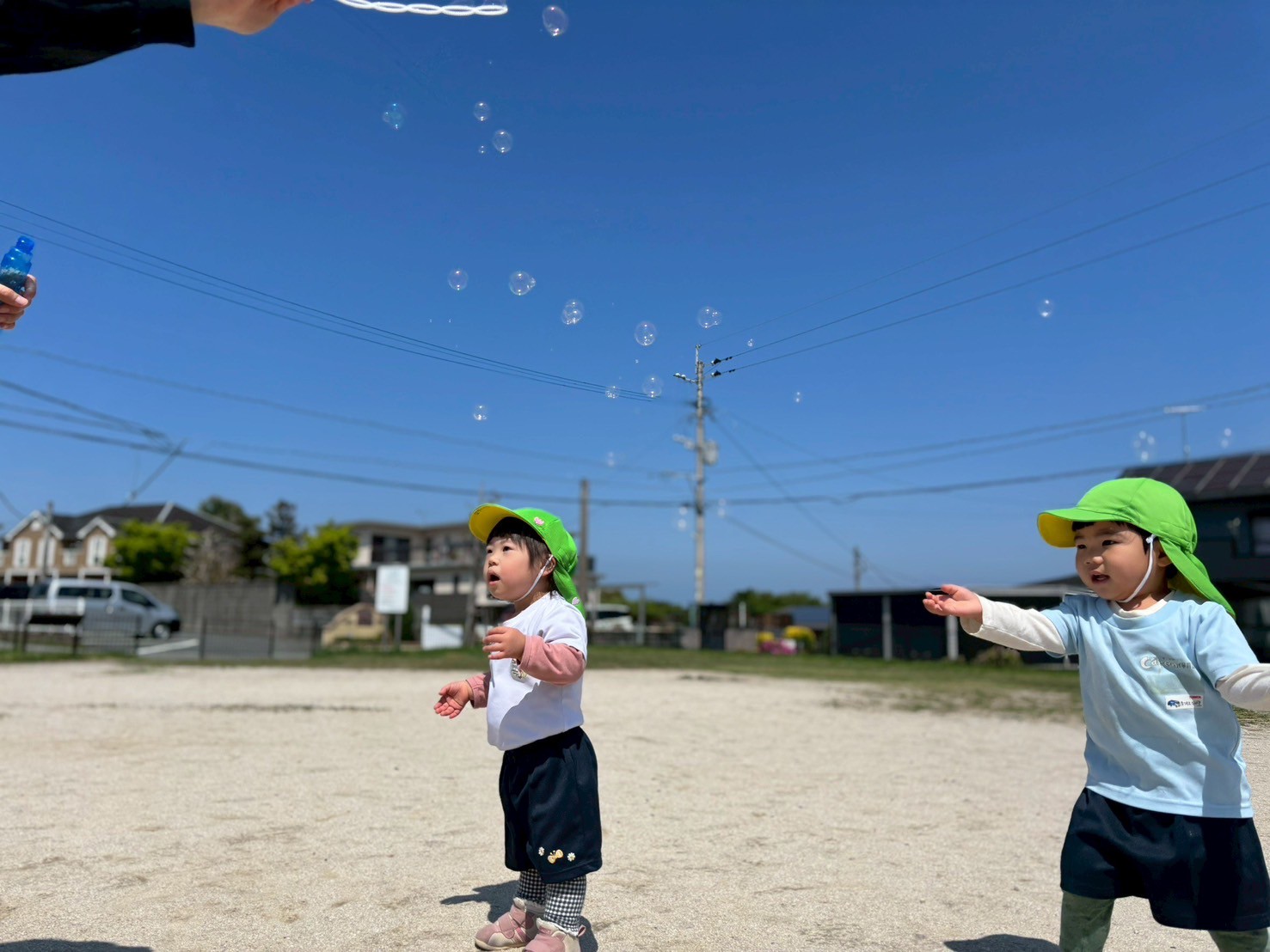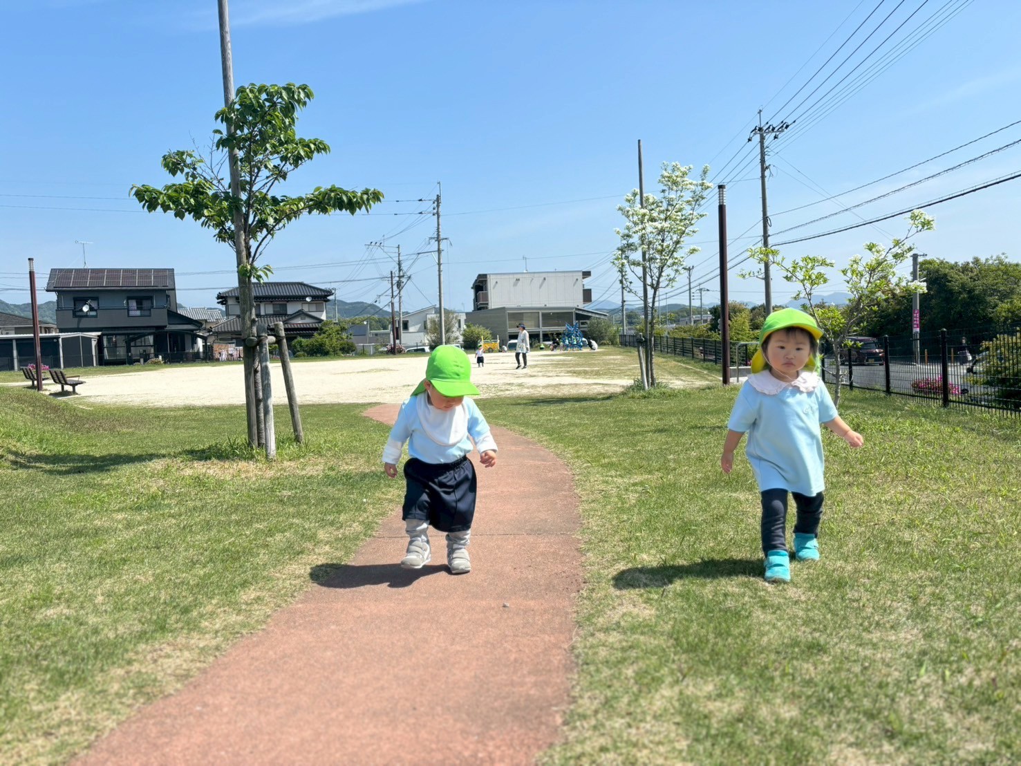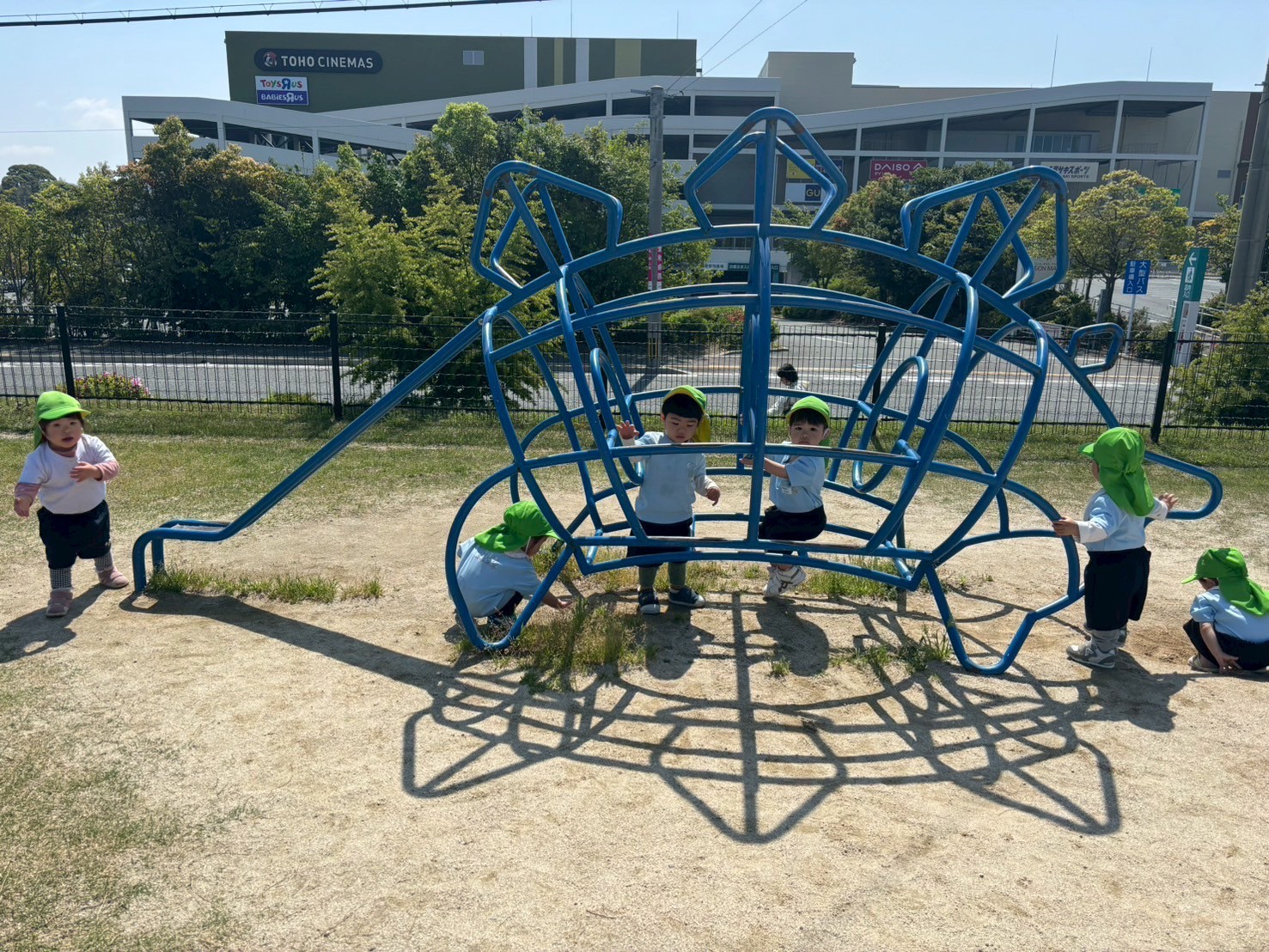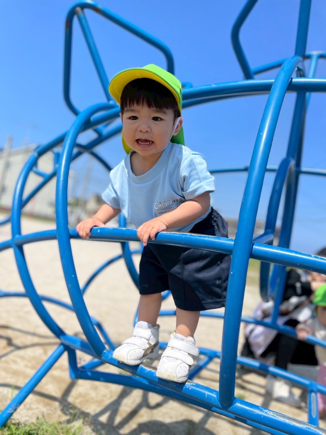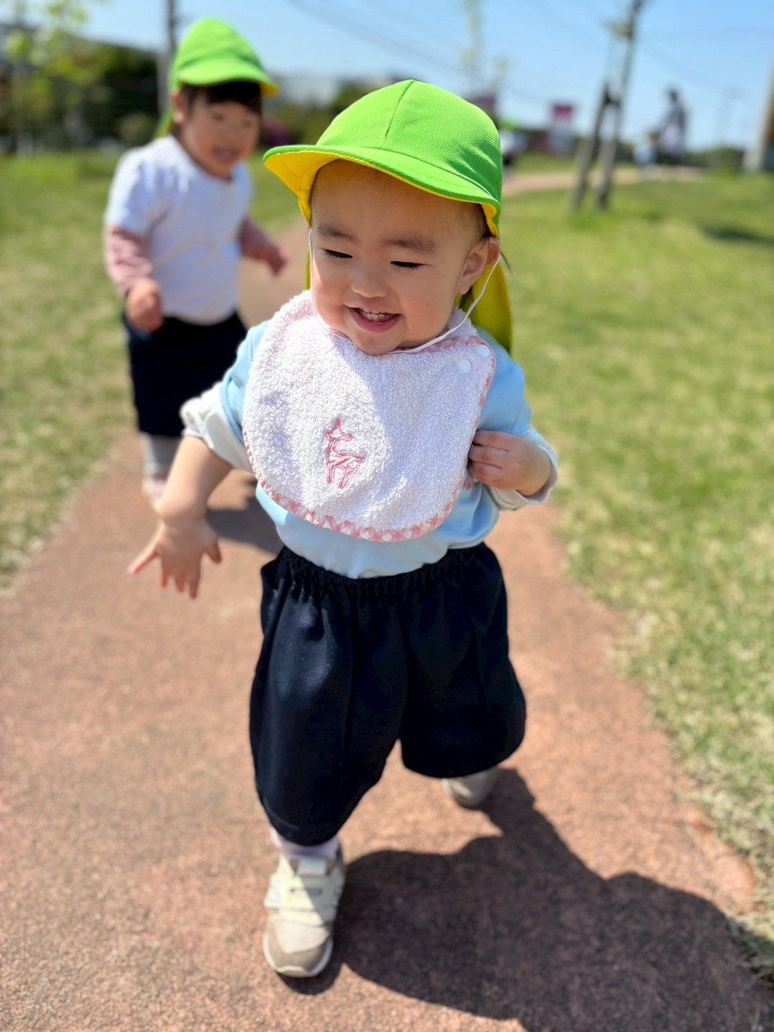その後はむつき公園にお散歩に行きました✨「おはなきれいね〜🌼」「(🚌に)バイバ〜イ👋🏻」など、おしゃべりが沢山🤗公園では、🦕のジャングルジムでバスごっこをしたり、シャボン玉🫧遊びや草花を見つけたりと、のびのび楽しみました🍀【福津園の今日の給食です】