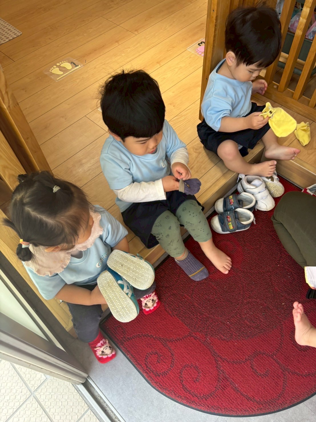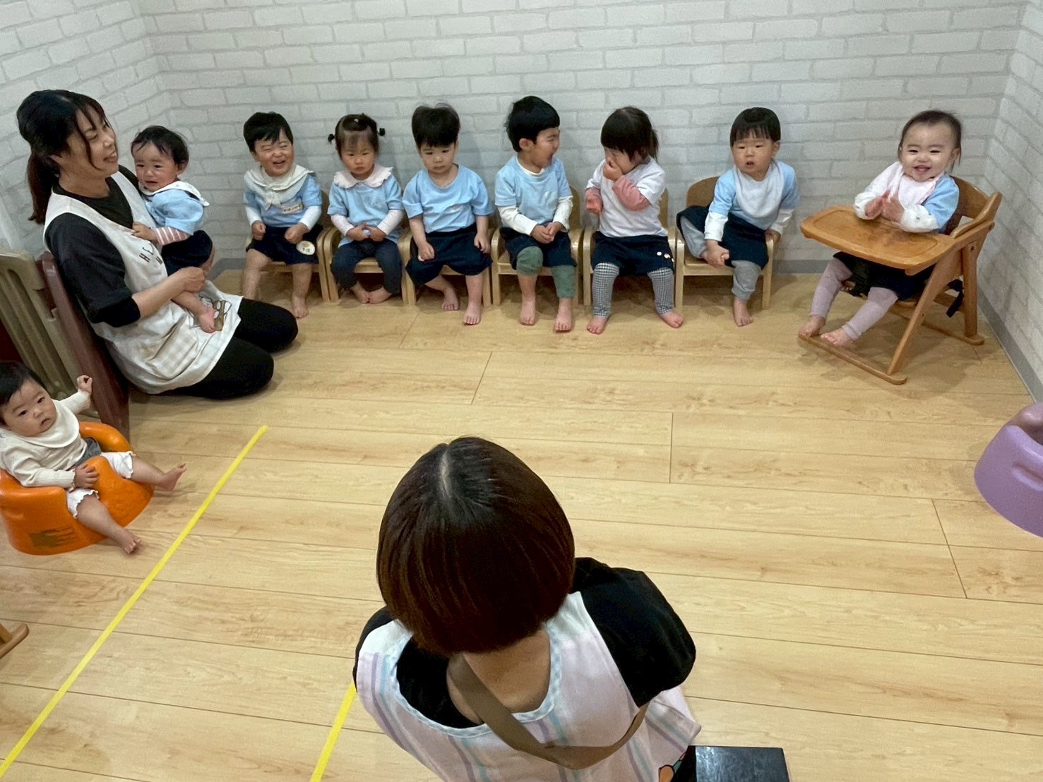 色んなフルーツが出てくる絵本を読んで、美味しそうにもぐもぐぱくん😋した後は、運動会のダンスを踊りましたよ🕺🍊パンダ組さんの中にはすっかり踊りを覚えている子もおり、みんなも一緒にフリフリ身体を動かす様子がとっても可愛いかったです❤️「まだしたい〜‼️」とノリノリでした🎵これからも楽しく取り組んでいけたらと思います👍