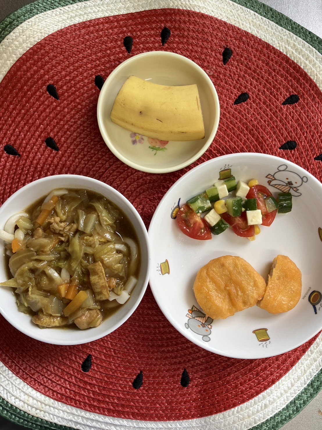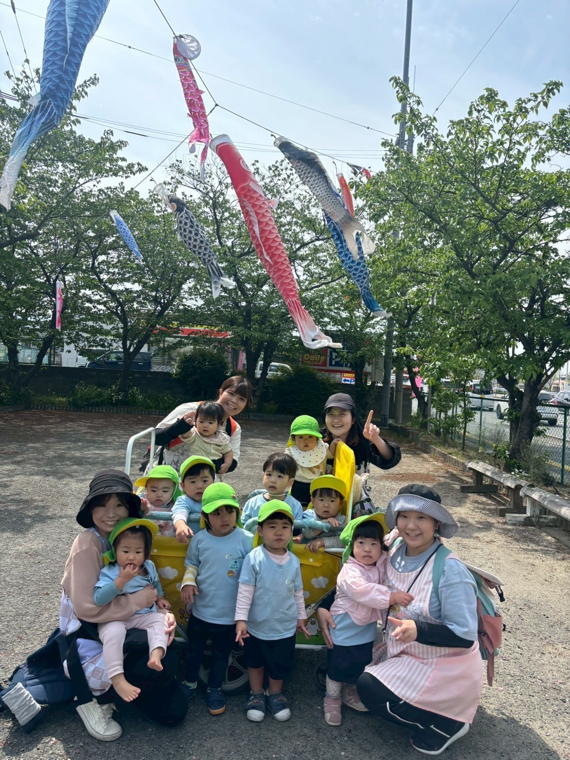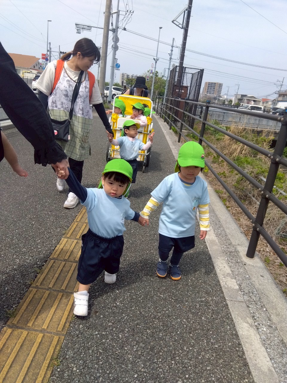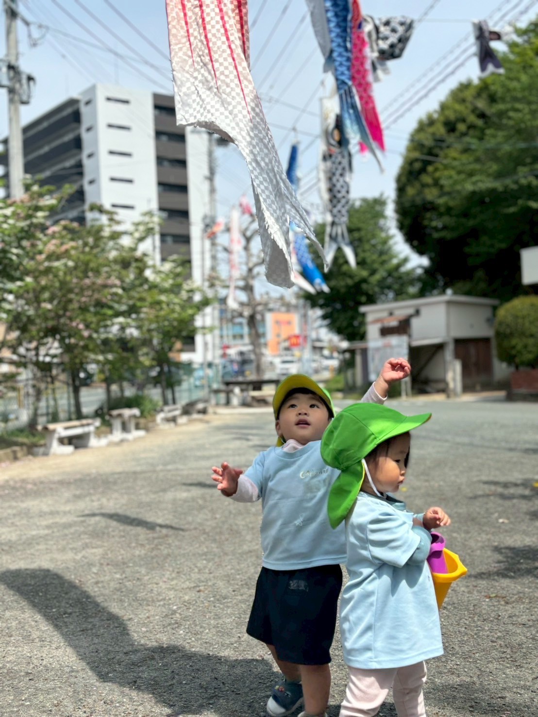 その後はむつき公園にお散歩に行きました✨「おはなきれいね〜🌼」「(🚌に)バイバ〜イ👋🏻」など、おしゃべりが沢山🤗公園では、🦕のジャングルジムでバスごっこをしたり、シャボン玉🫧遊びや草花を見つけたりと、のびのび楽しみました🍀【福津園の今日の給食です】