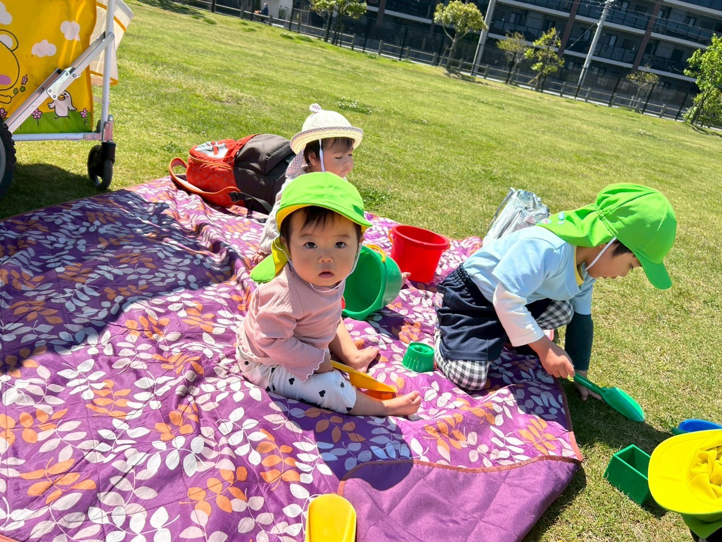 広い芝生の公園では、ボール遊びをしたり、お気に入りのスコップで遊んだり、草花を見つけたり…のびのびと体を動かしました🥰他園の2歳児さん達も遊びに来られていて、賑やかでしたよ💕
