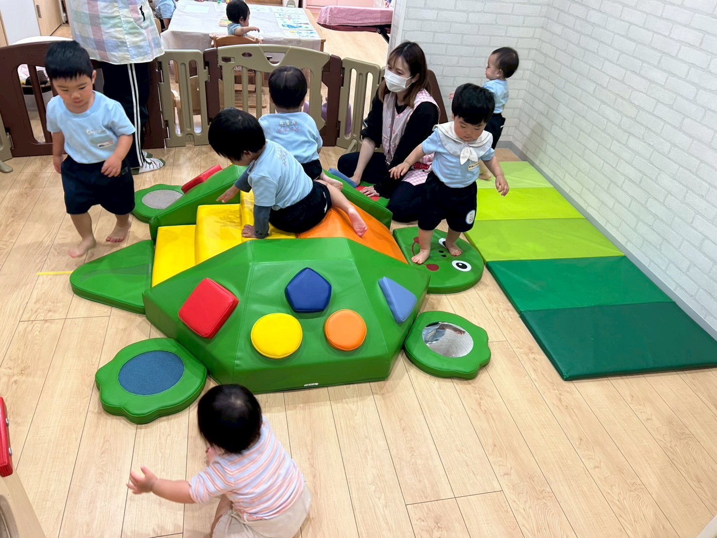 お外は雨だったので、室内でカメさんマットやお人形遊びをしてゆっくり過ごしましたよ🐢