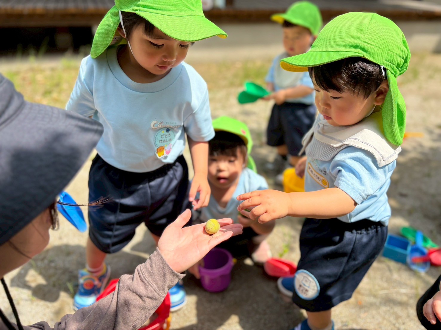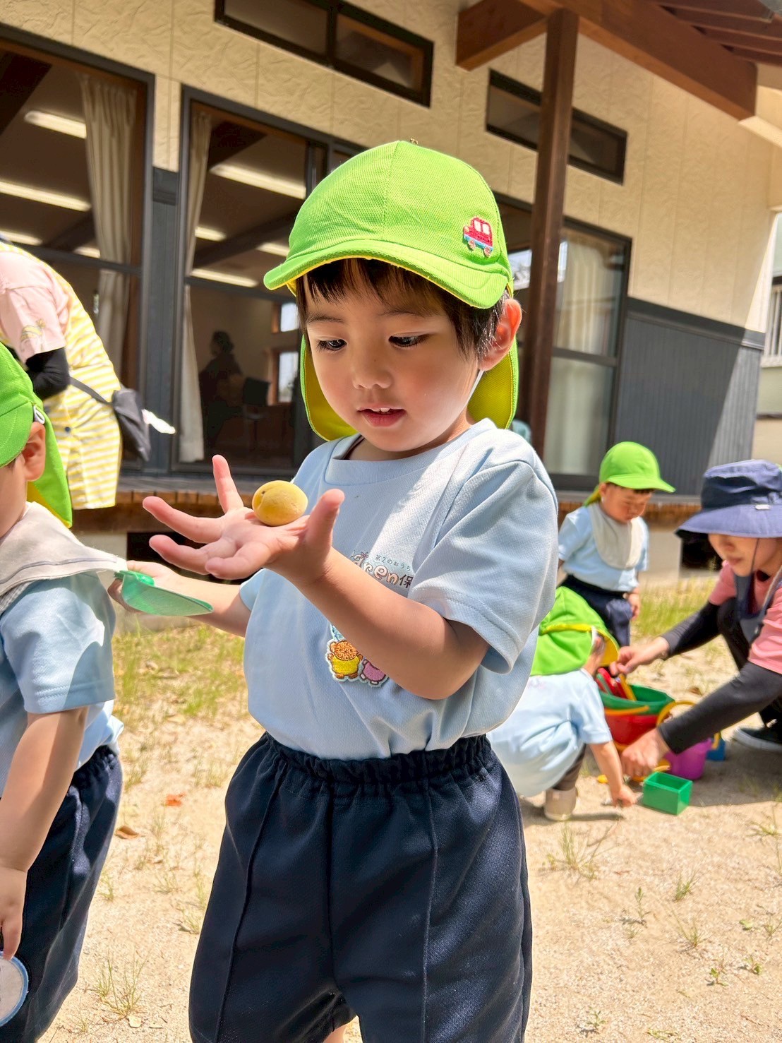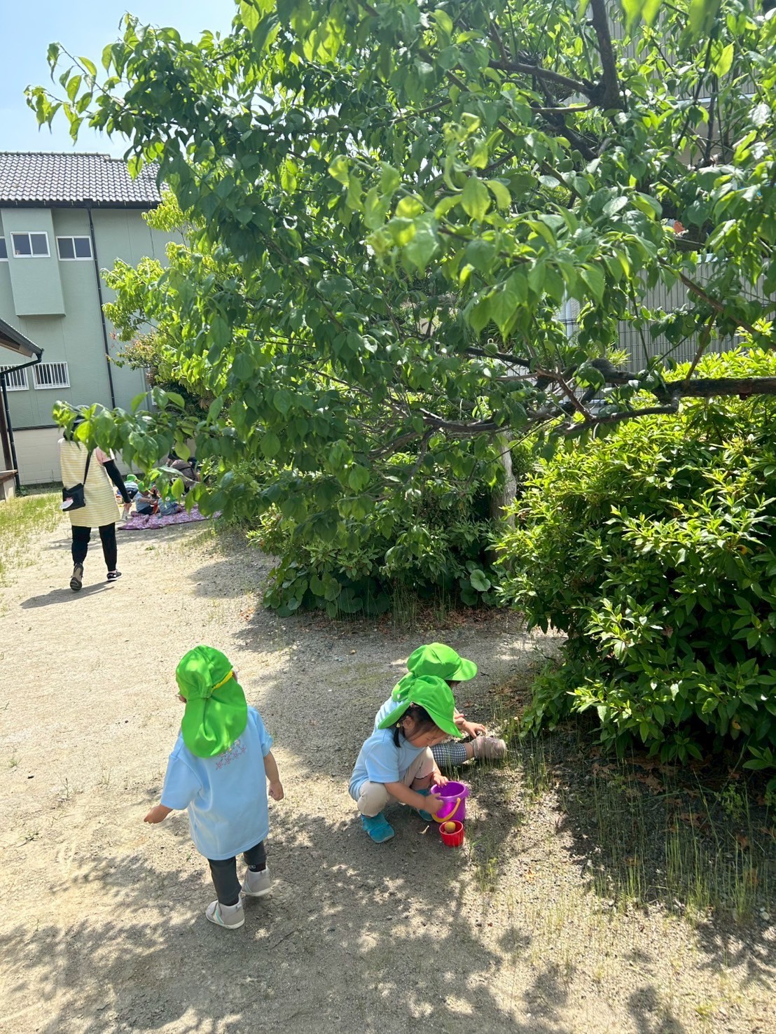 その後は『両谷公民館』まで遊びに行きました。ダンゴムシを見つけたり、梅の木から落ちている梅を集めたりと今日もいっぱい遊びました🥰
