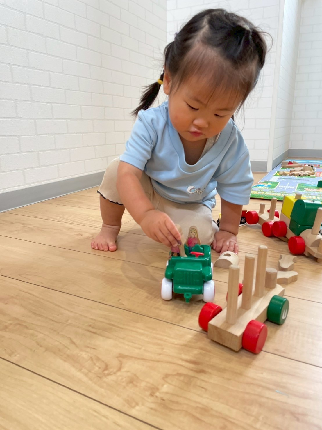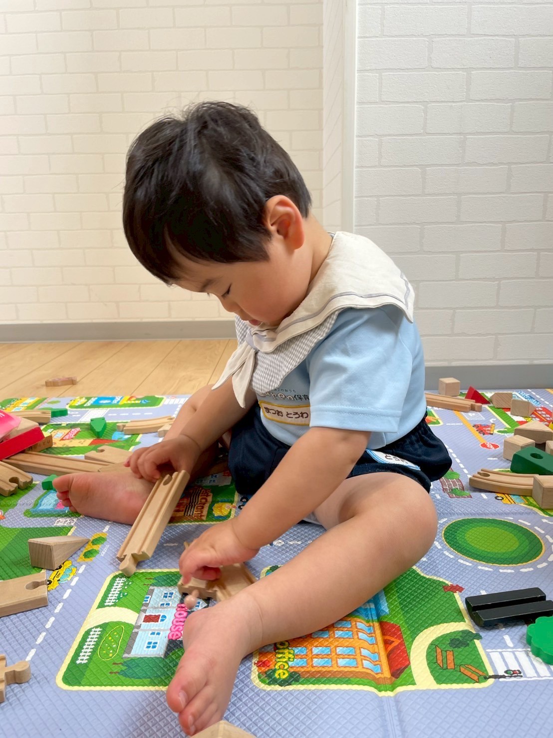 朝夕の寒暖差からか、鼻水が出ている子もいたので、室内で乗り物の玩具や積み木で遊びました🚗街並みのマットを広げて車を走らせたり、線路を繋げてみようとチャレンジして楽しんでいましたよ🚃複数人で遊ぶのではなく、一人一人が自分のペースでゆっくりとした時間を過ごせました☺️🏠