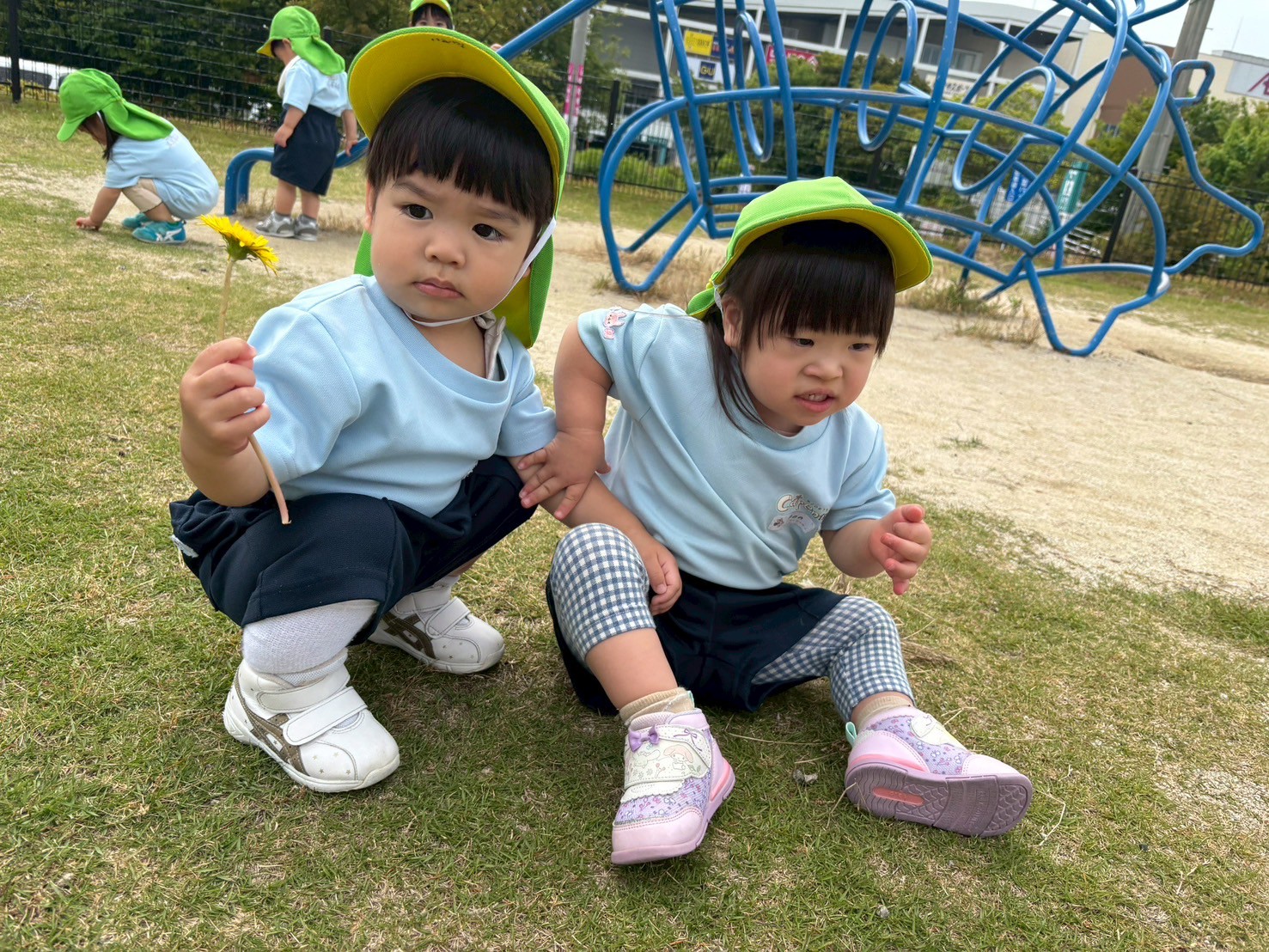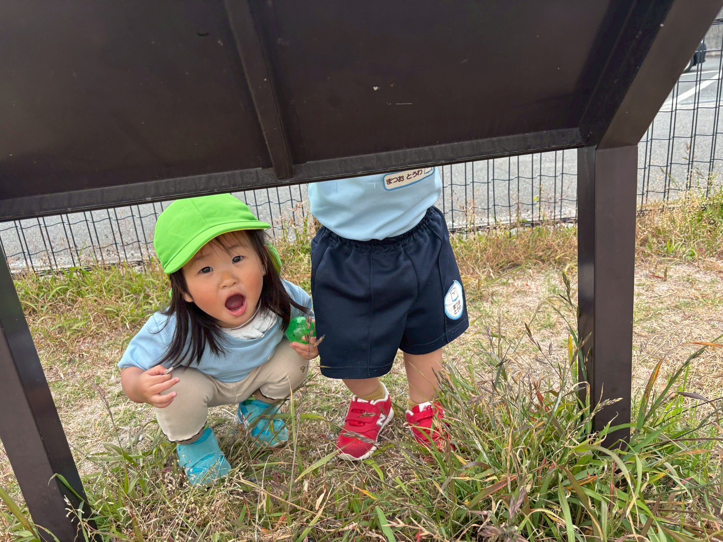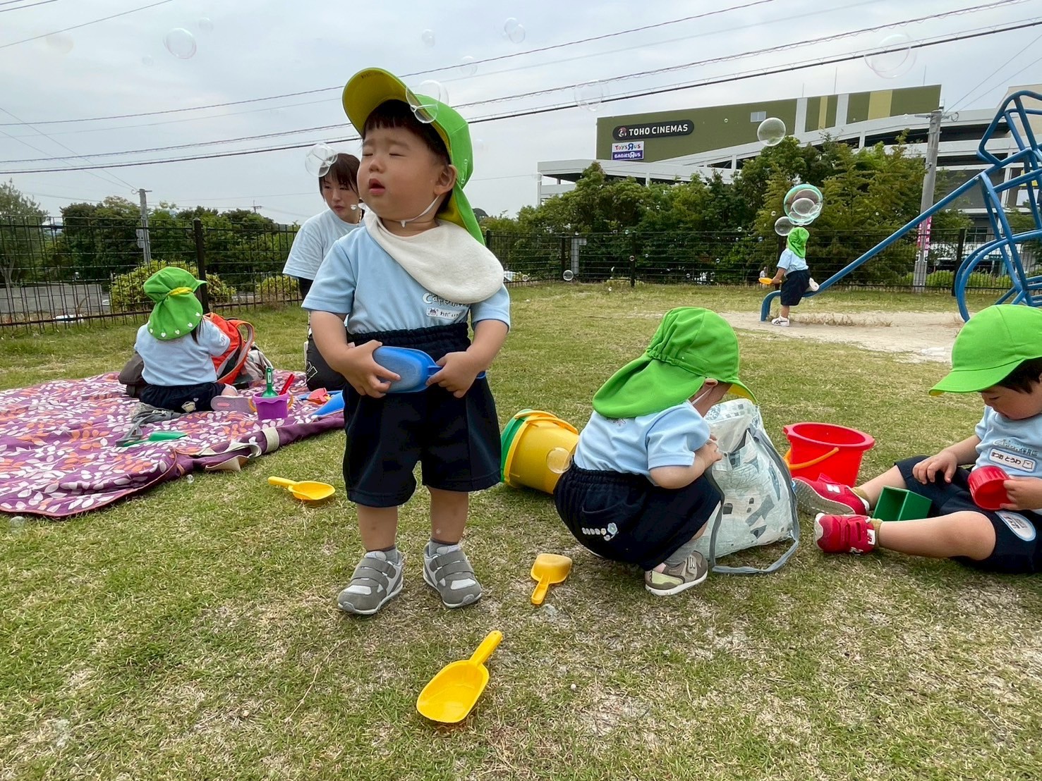 シャボン玉🫧を追いかけたり、R1の容器に小石や葉っぱ🌱を集めてカラカラ〜🎶と音を鳴らして楽しんでいましたよ🥳💫