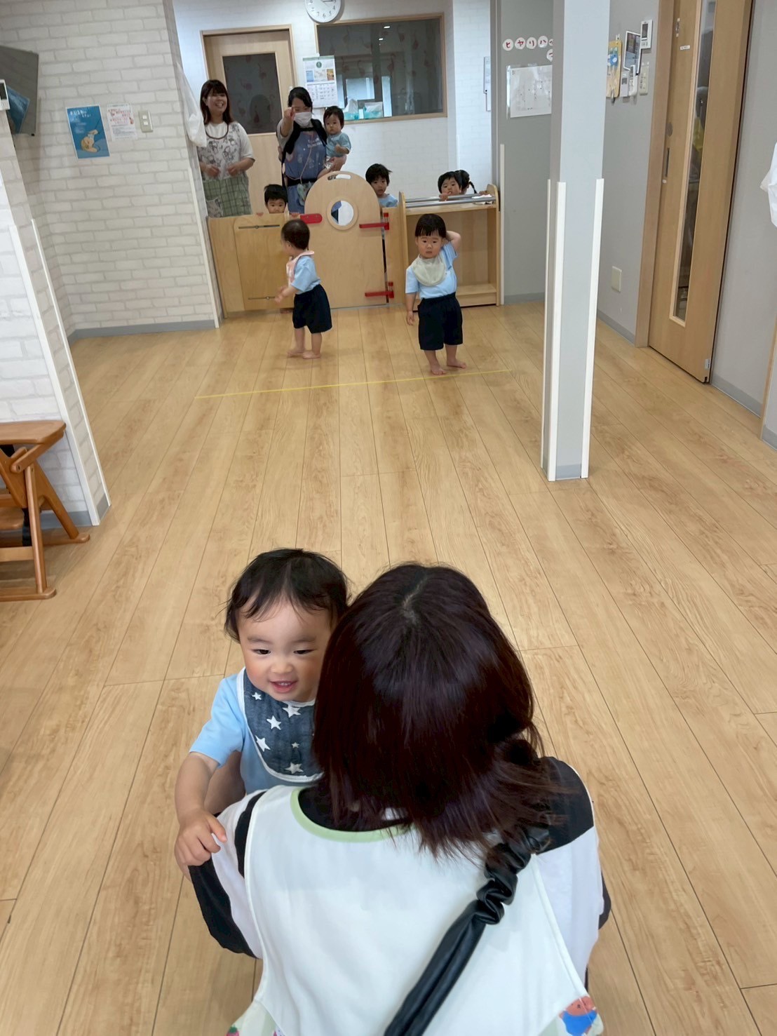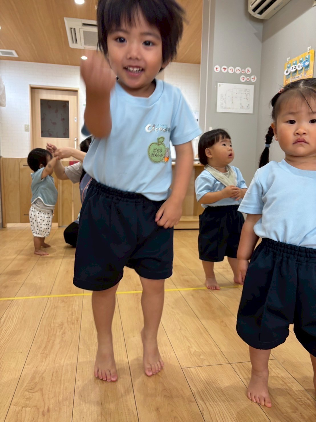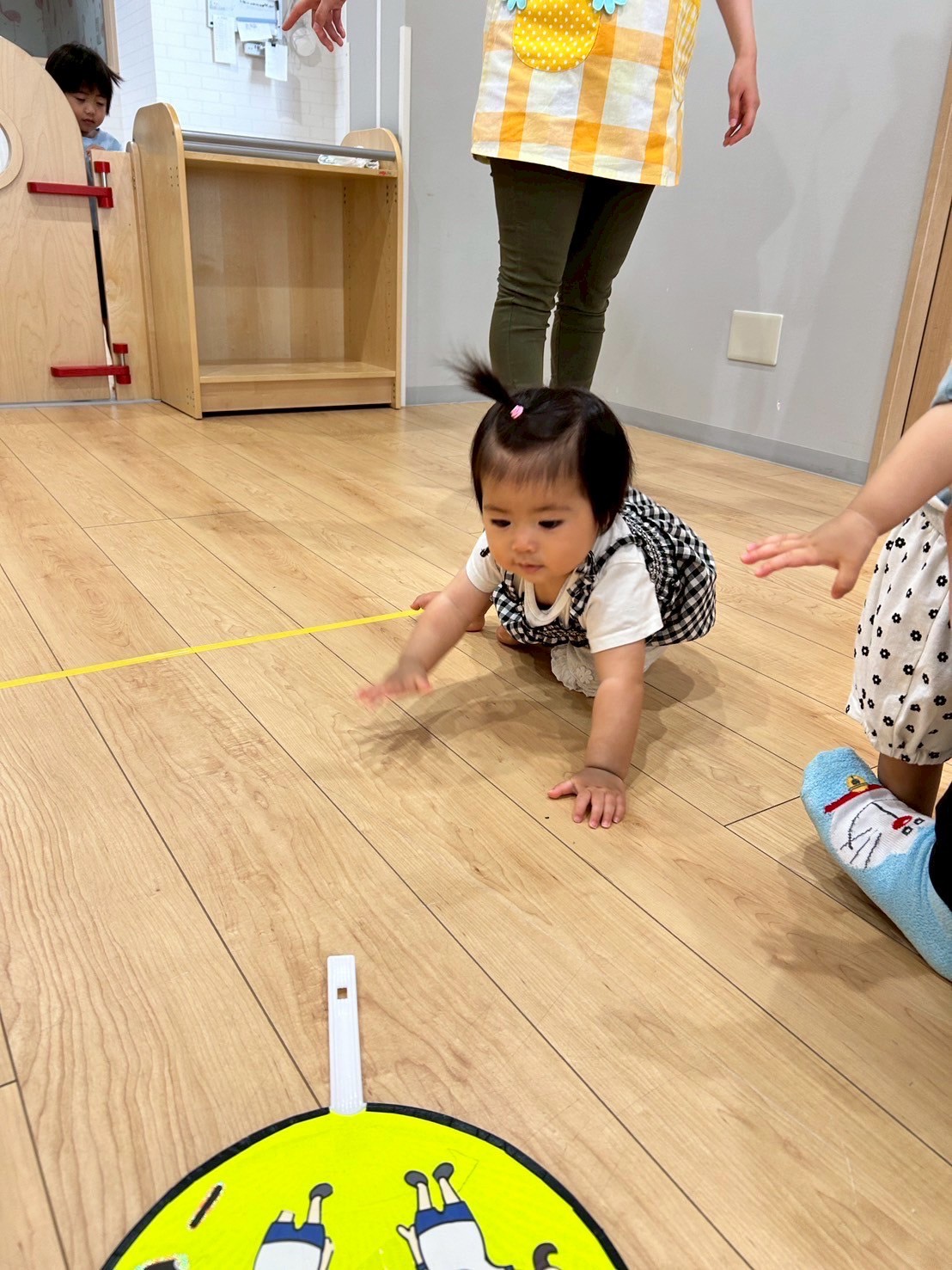 「だるまさんがころんだ」の準備体操もバッチリポーズがキマっていましたよ😎ひよこ組さん🐣のハイハイはそれぞれのペースでゴールを目指して頑張りました🐥